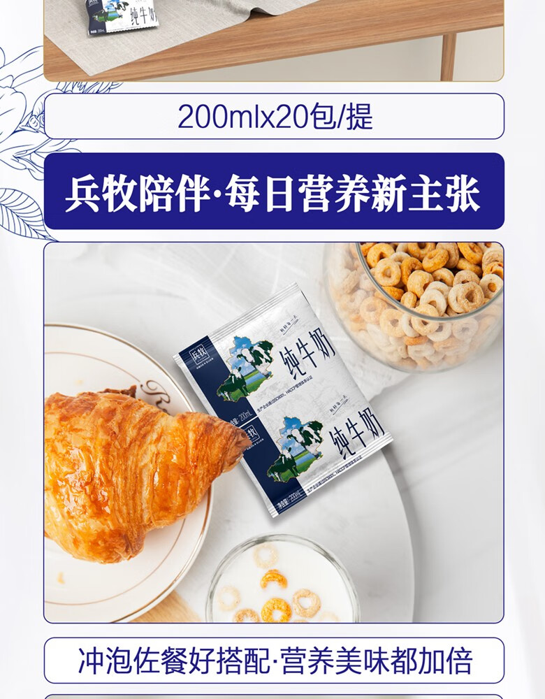 兵牧纯牛奶 利乐枕20袋