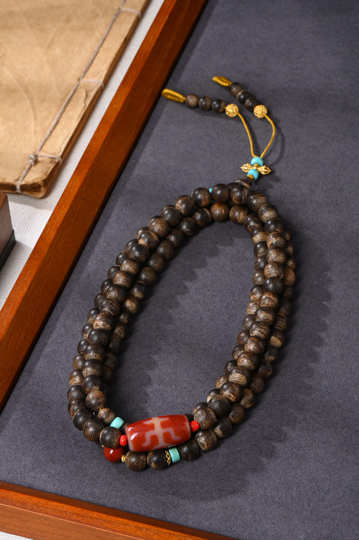 | 配饰: | 18K金+南红+绿松+天珠 |