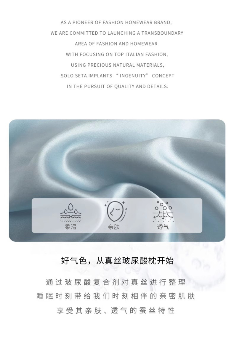 Solo seta22姆米双面真丝枕套玻尿酸桑蚕丝亲肤丝绸信封枕秋冬新