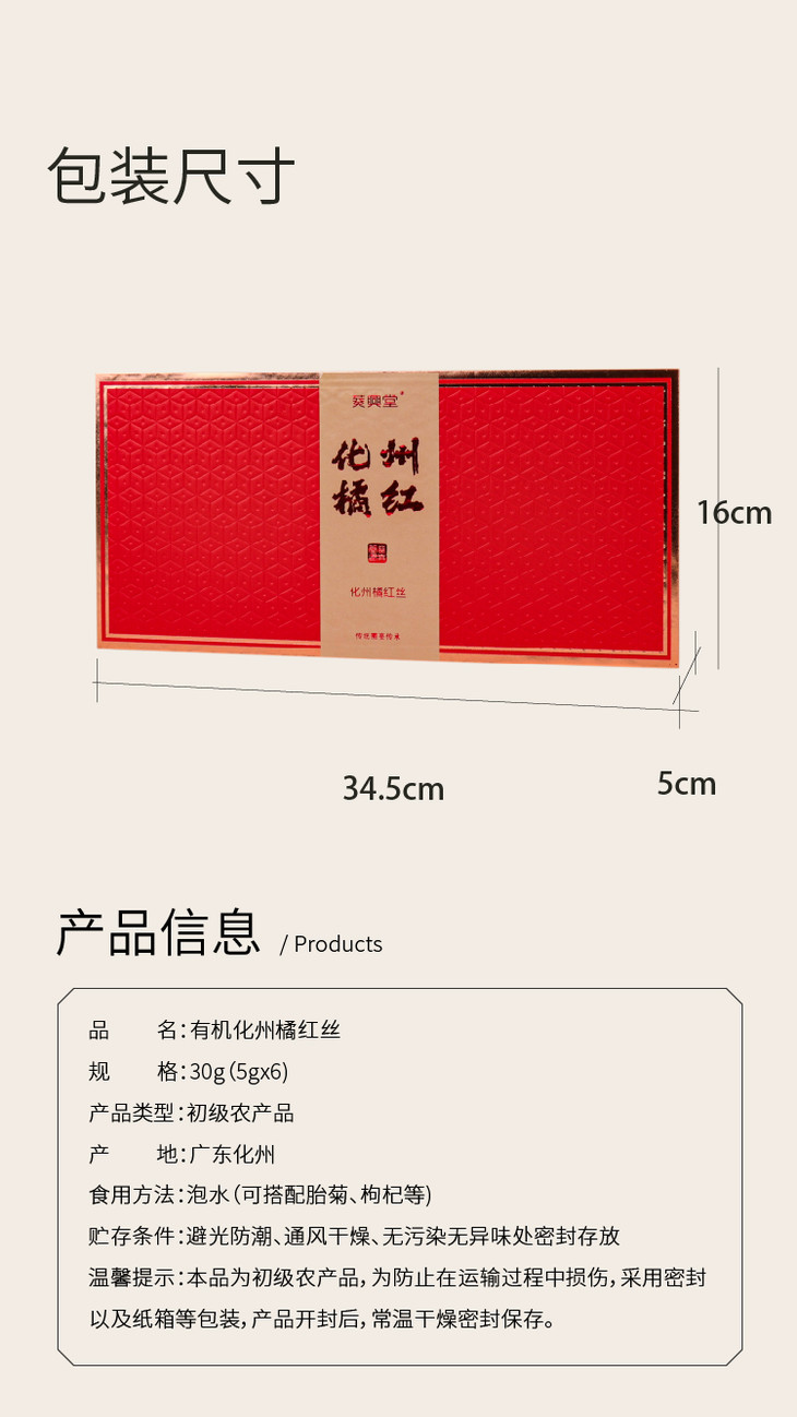 【直送到家】30g葵興堂有机化州橘红丝独立小瓶装