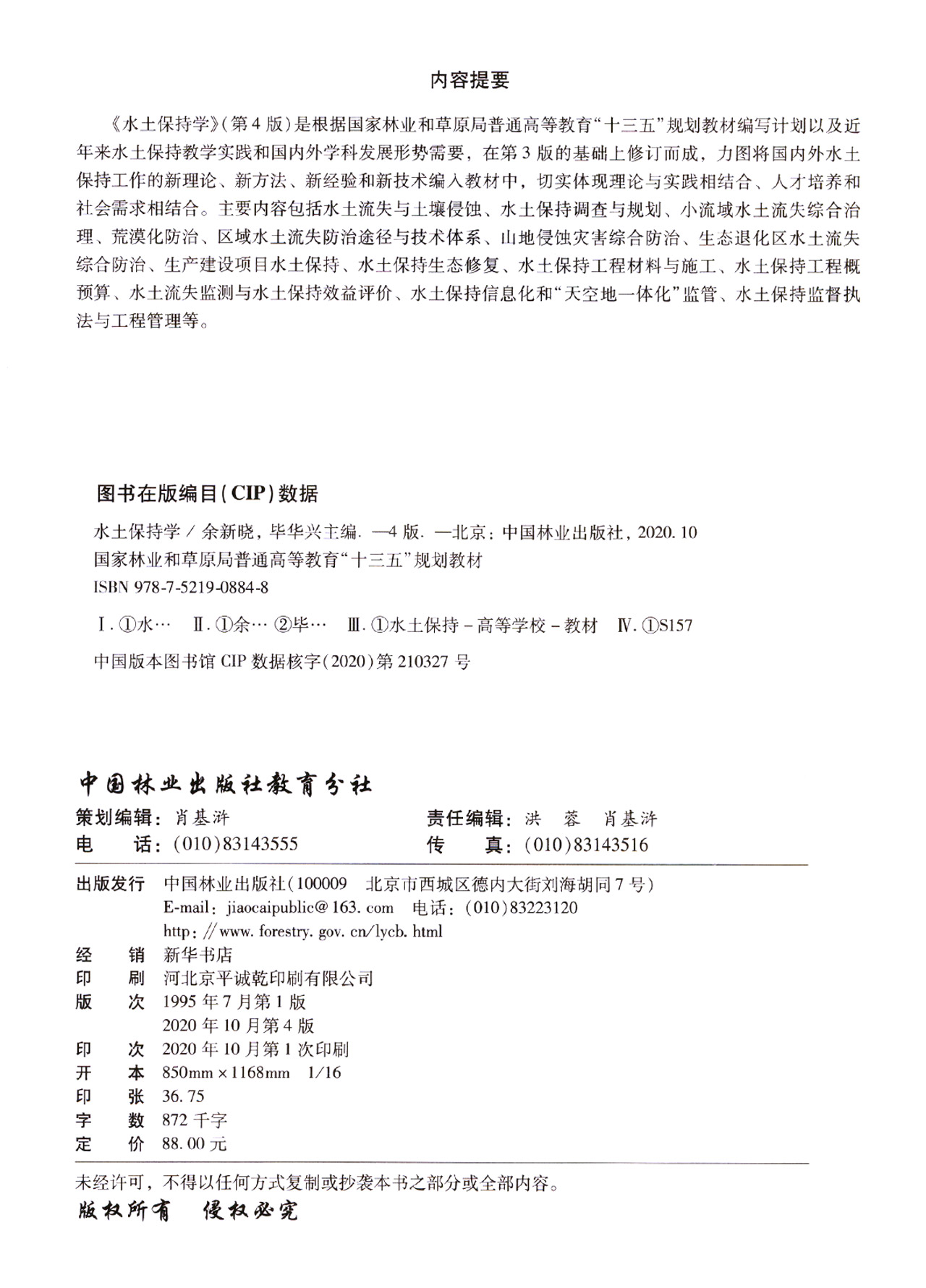 水土保持学 第4版 高等院校水土保持与荒漠化防治专业教材 余新晓//毕华兴 0884 中国林业出版社