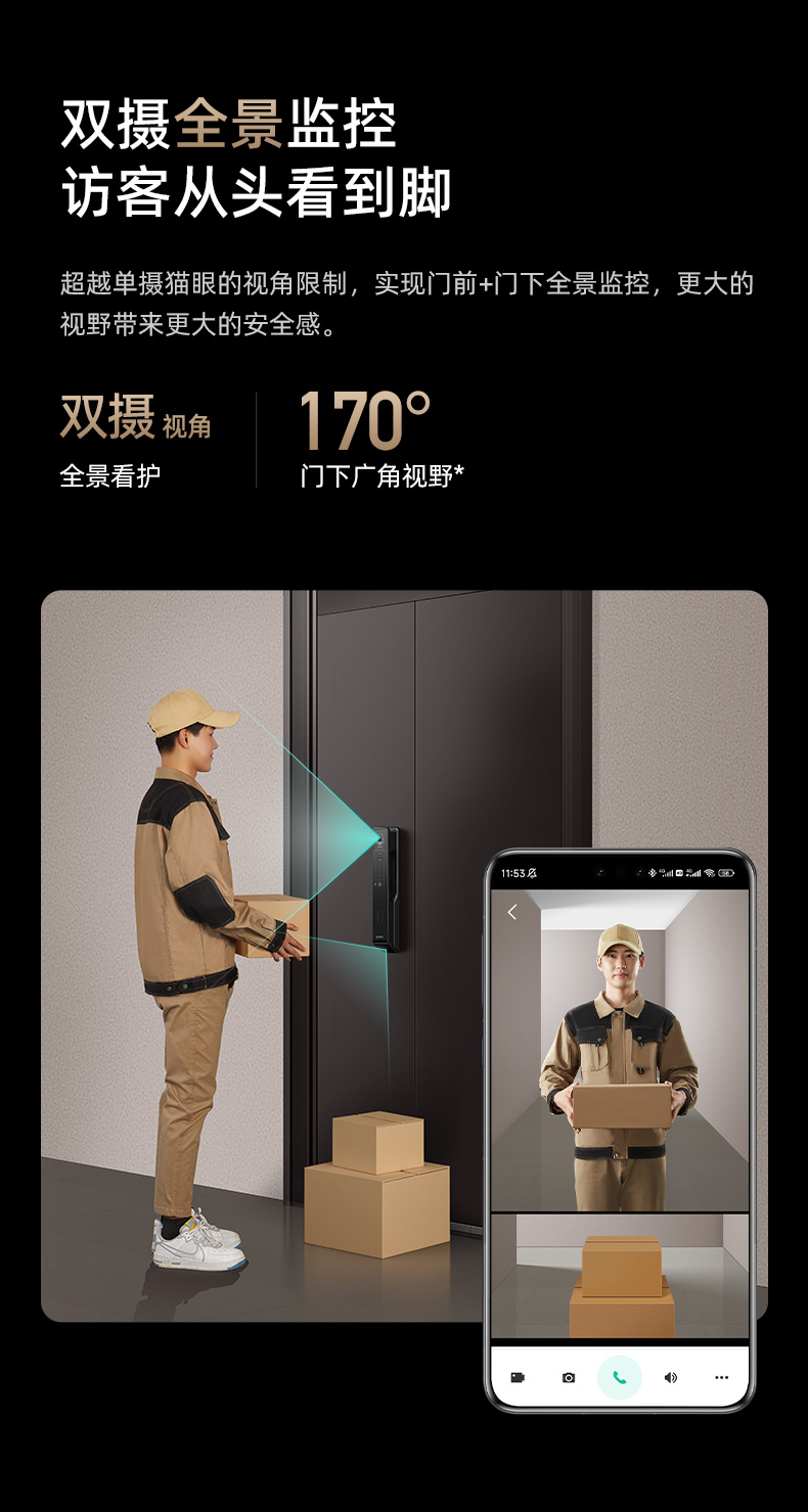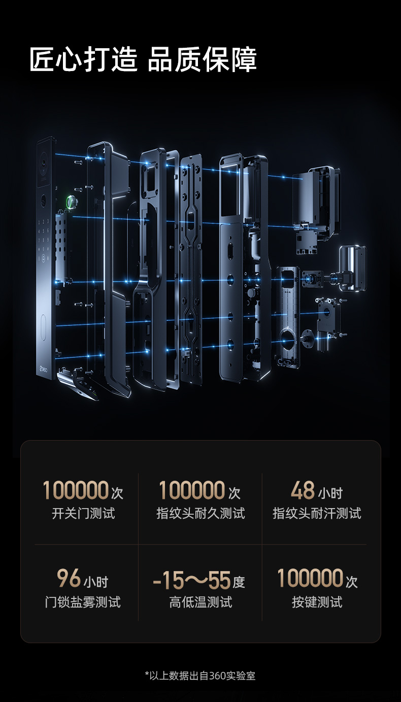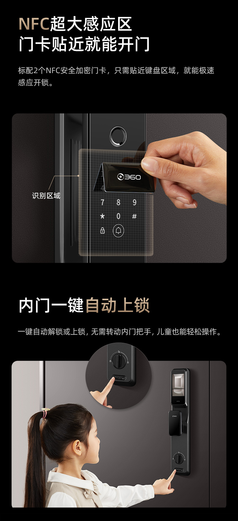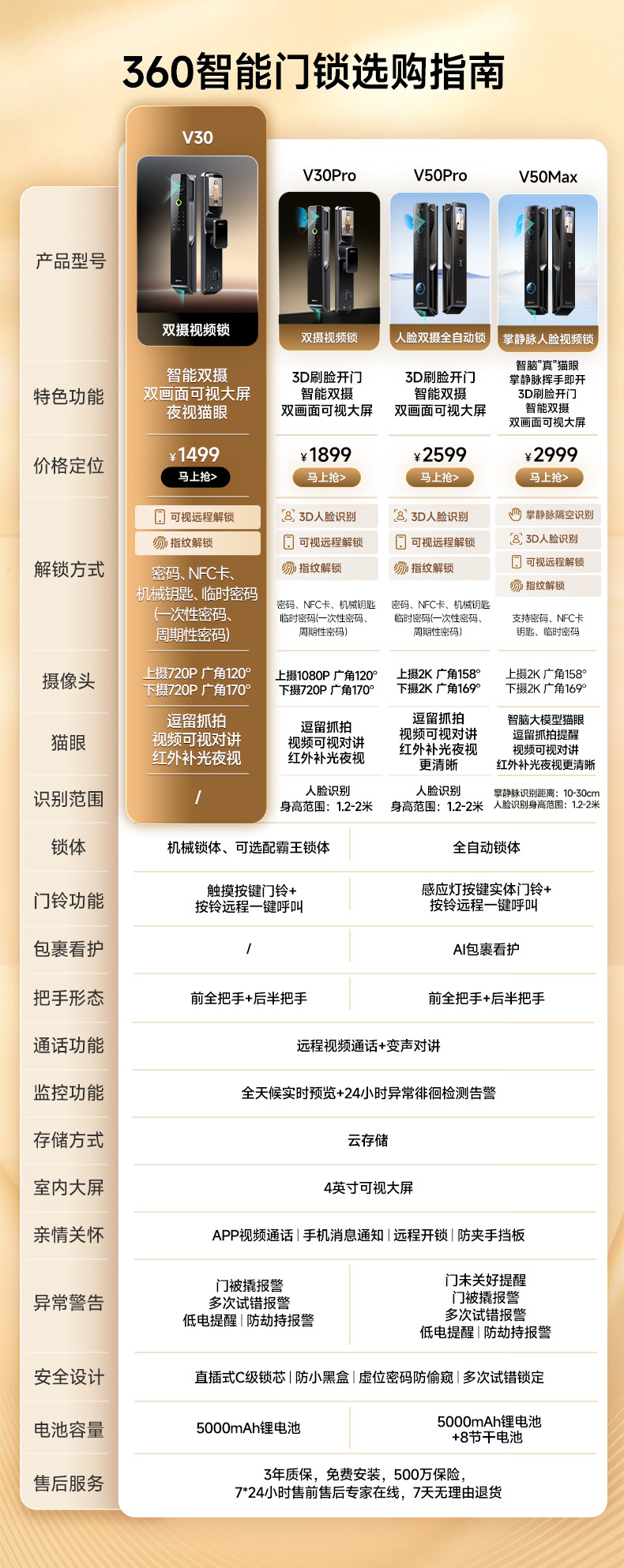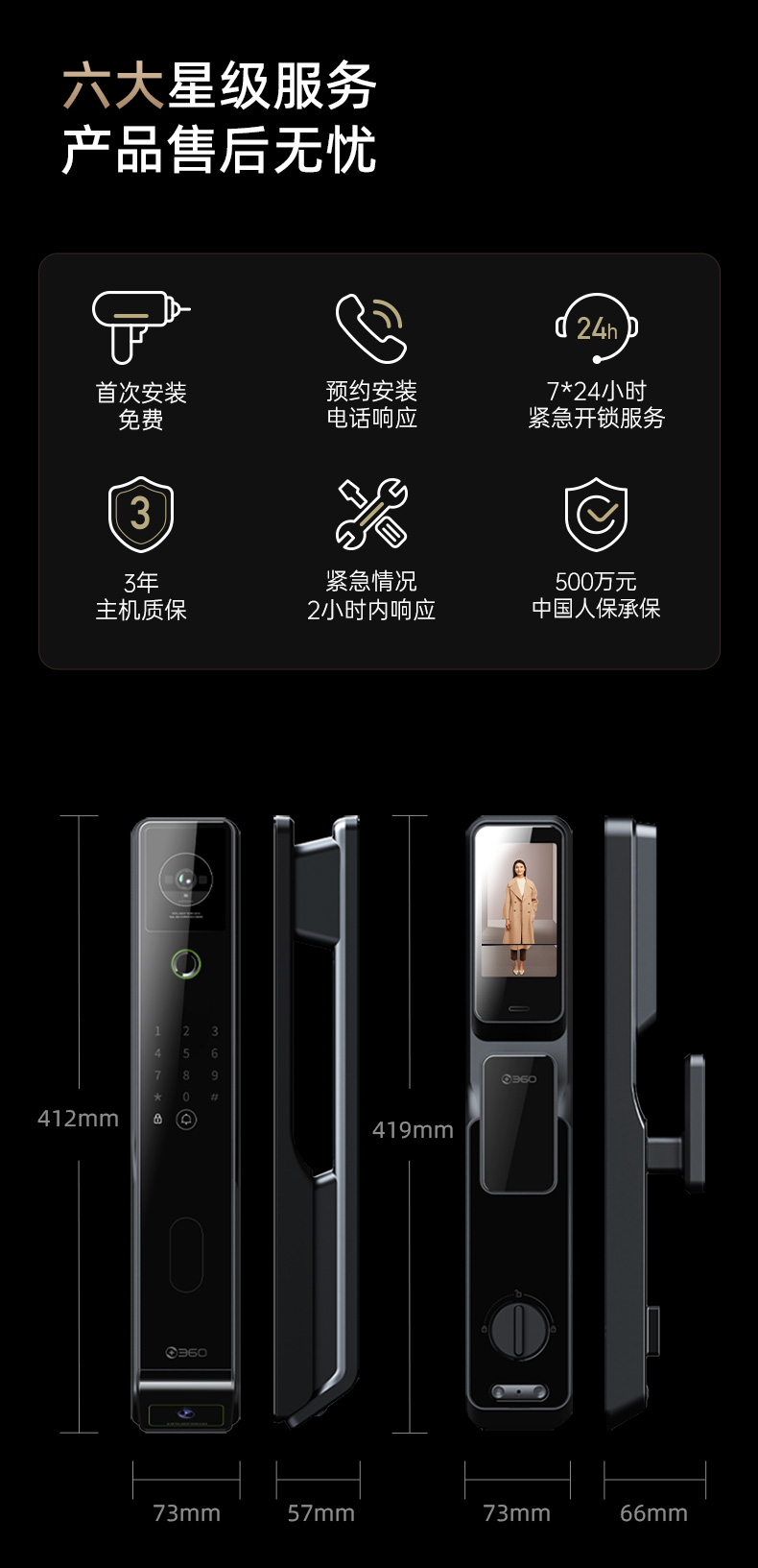 【超值】360智能门锁 V30 双摄全景监控 4英寸全彩大屏 AI指纹解锁 双向语音对讲