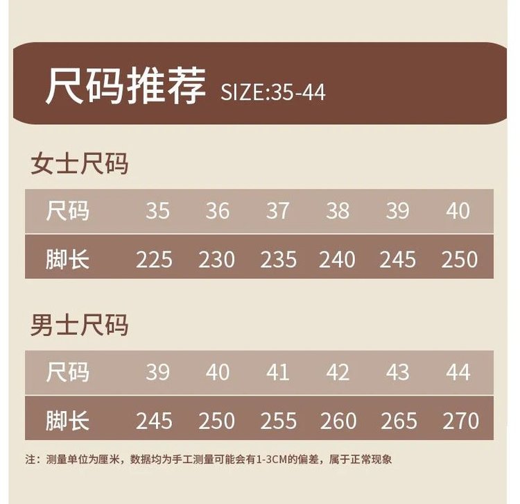 【规 格 】:35-44 木乃棕、暗夜黑【发货地】:福建【发货快递】:圆通【不发货地区】:港澳台 【加运费地区】:新疆 西藏 首件+18续件+18内蒙古 甘肃 宁夏 海南 青海 首件+15续件+15【发 货 时间】:72小时内发货【是否支持7天无理由】是【售 后 标准】:1.七天无理由退换货,商品须包装齐全,影响二次销售情况不接受退换货2.发货后不支持拦截或拒收,请谨慎选择(上传单号和平台发货有一定的时间差,平台没上传单号不代表没有发货)3.外包装破损,请直接拒收或联系快递赔付4.如有质量问题24小时之内带面单+产品照片联系客服进行赔付或者补发5.纸箱发货商品请用纸箱退货,否则运输破损顾客自行承担⚠️ 清洗时不宜长时间泡水和大力洗刷,容易导致绒面脱落!