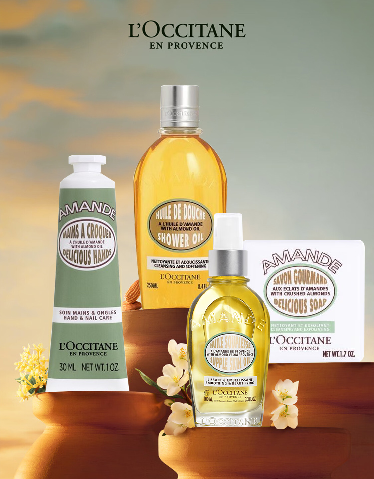 【保税直发】Loccitane 欧舒丹 杏仁身体套装(沐浴油250ml+美肤油100ml+杏仁护手霜30ml+杏仁磨砂皂50g) 【2028/4/2】