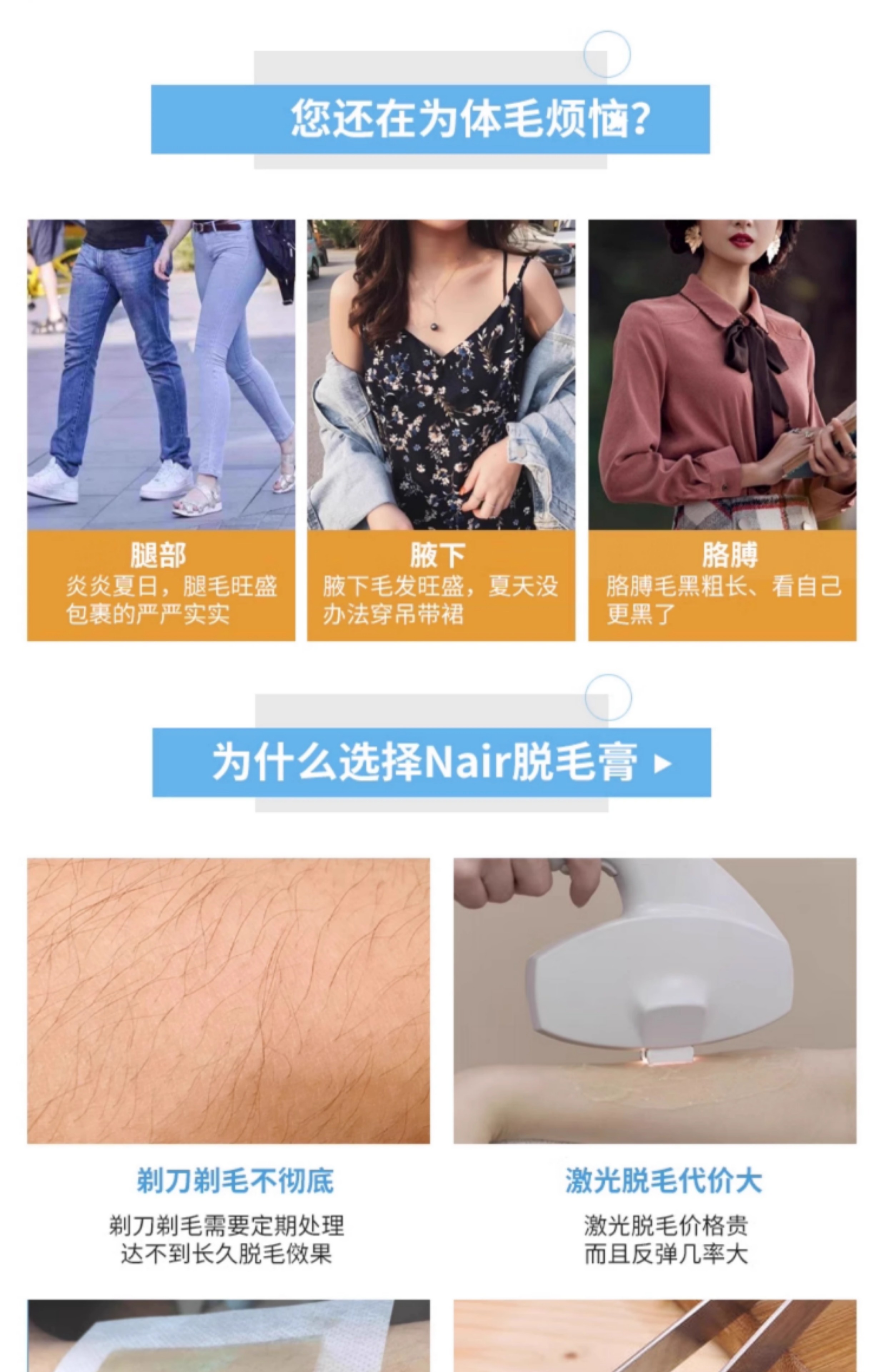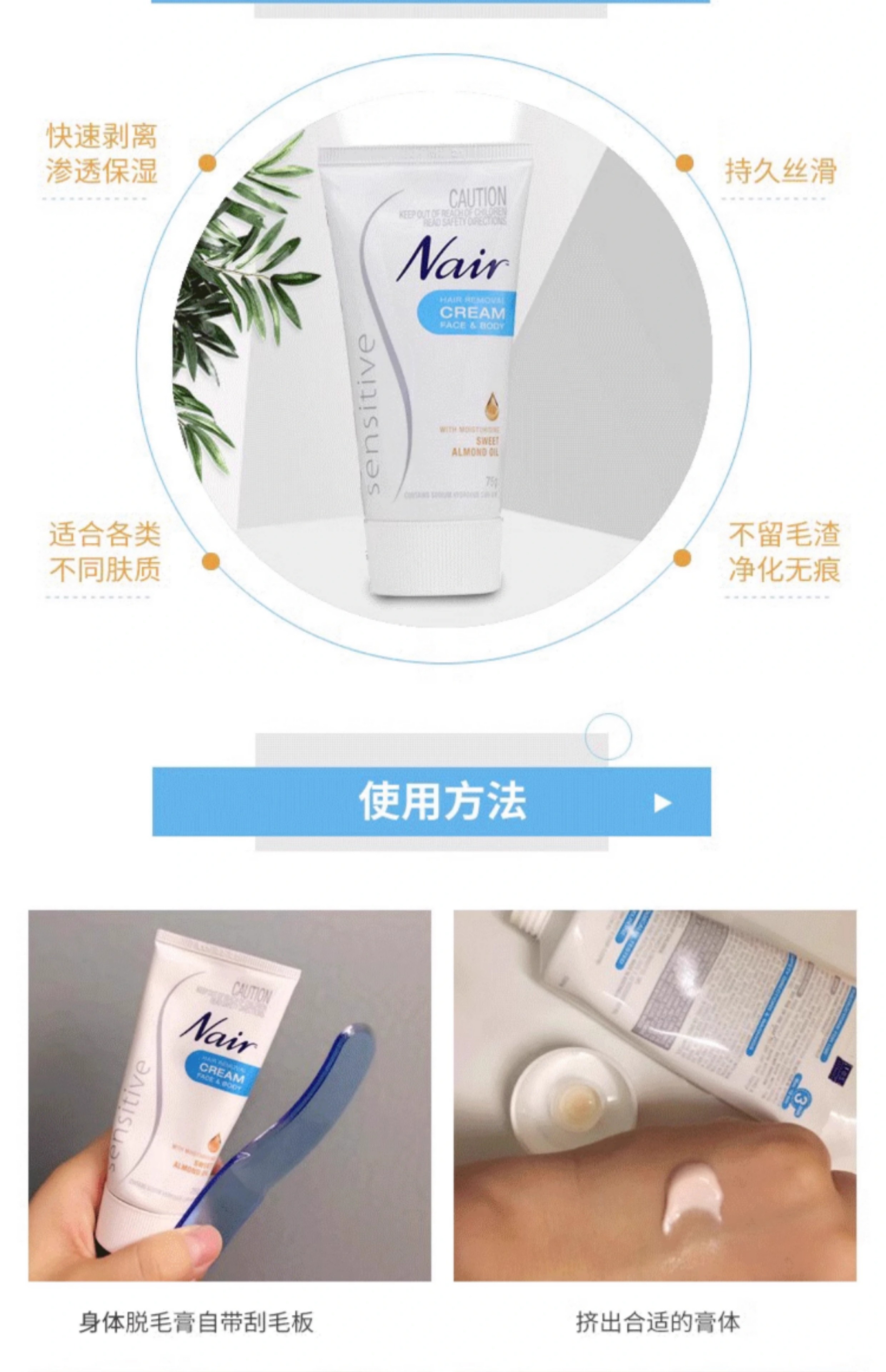 【保税仓】Nair 温和身体腋下手脚脱毛膏75g