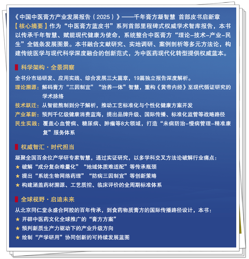 中国中医膏方产业发展报告(2025年)侯胜田 侯倩 主编 中医膏方蓝皮书 健康经济与管理系列 中国中医药出版社
