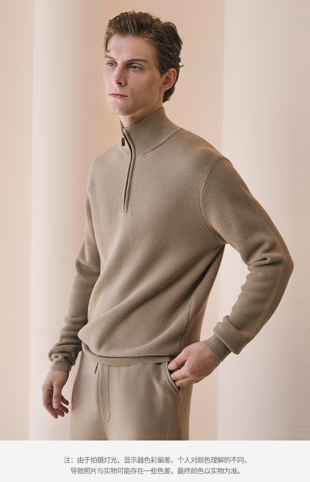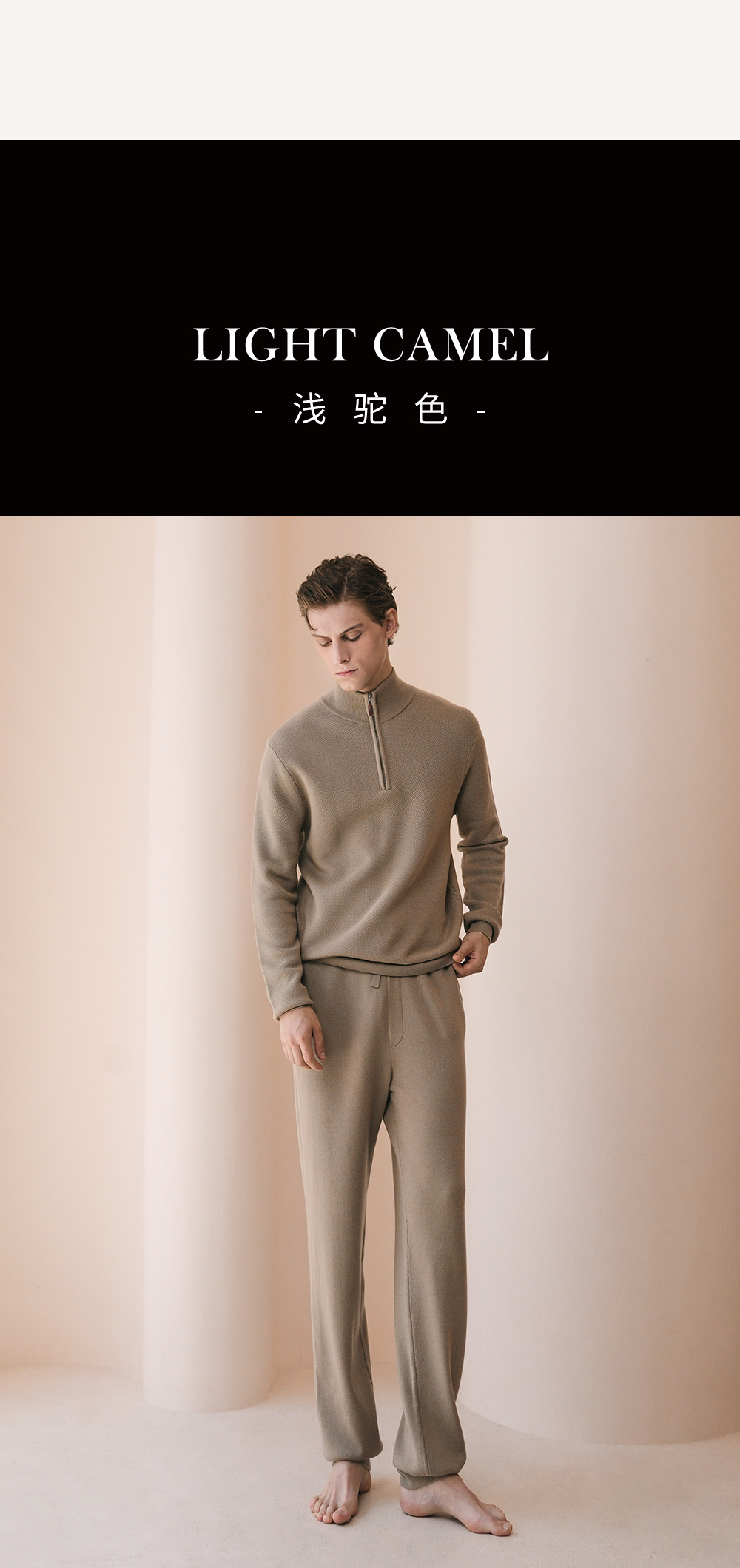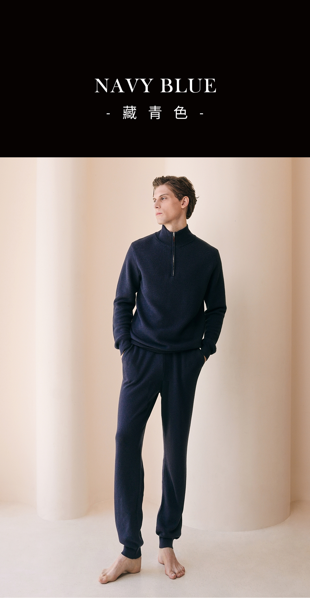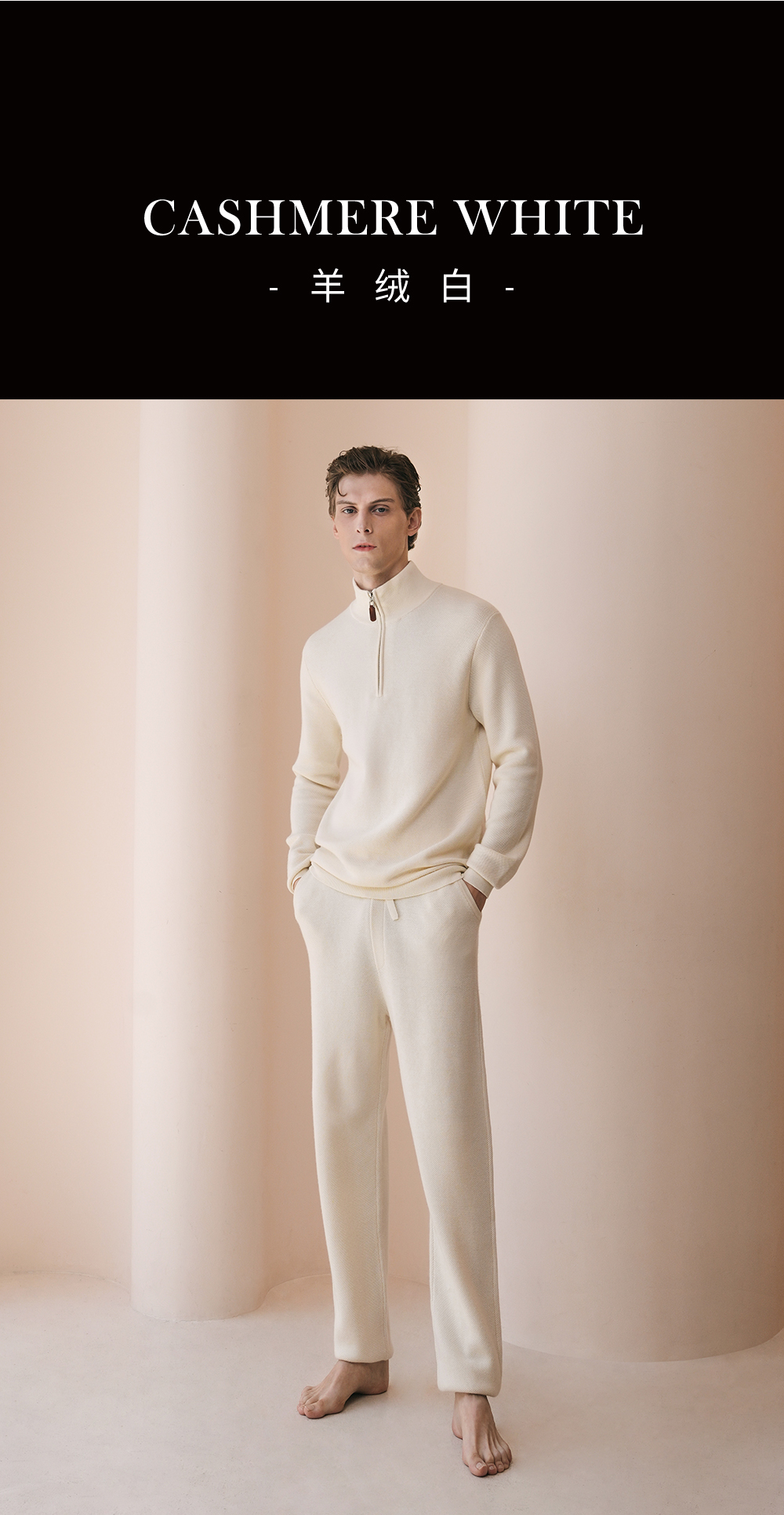 Solo seta男士纯色绵羊毛山羊绒桑蚕丝针织睡衣2026春季保暖上衣