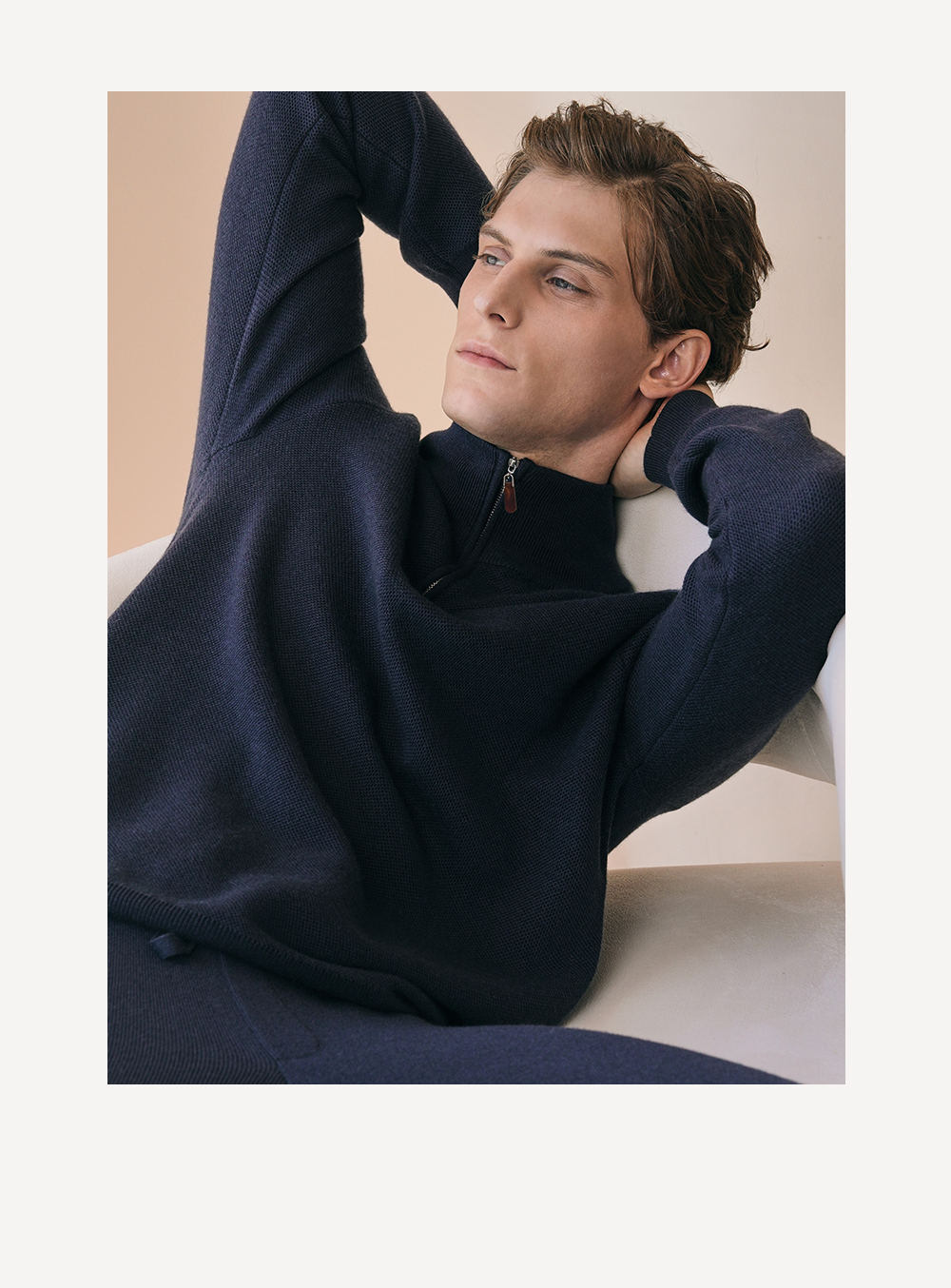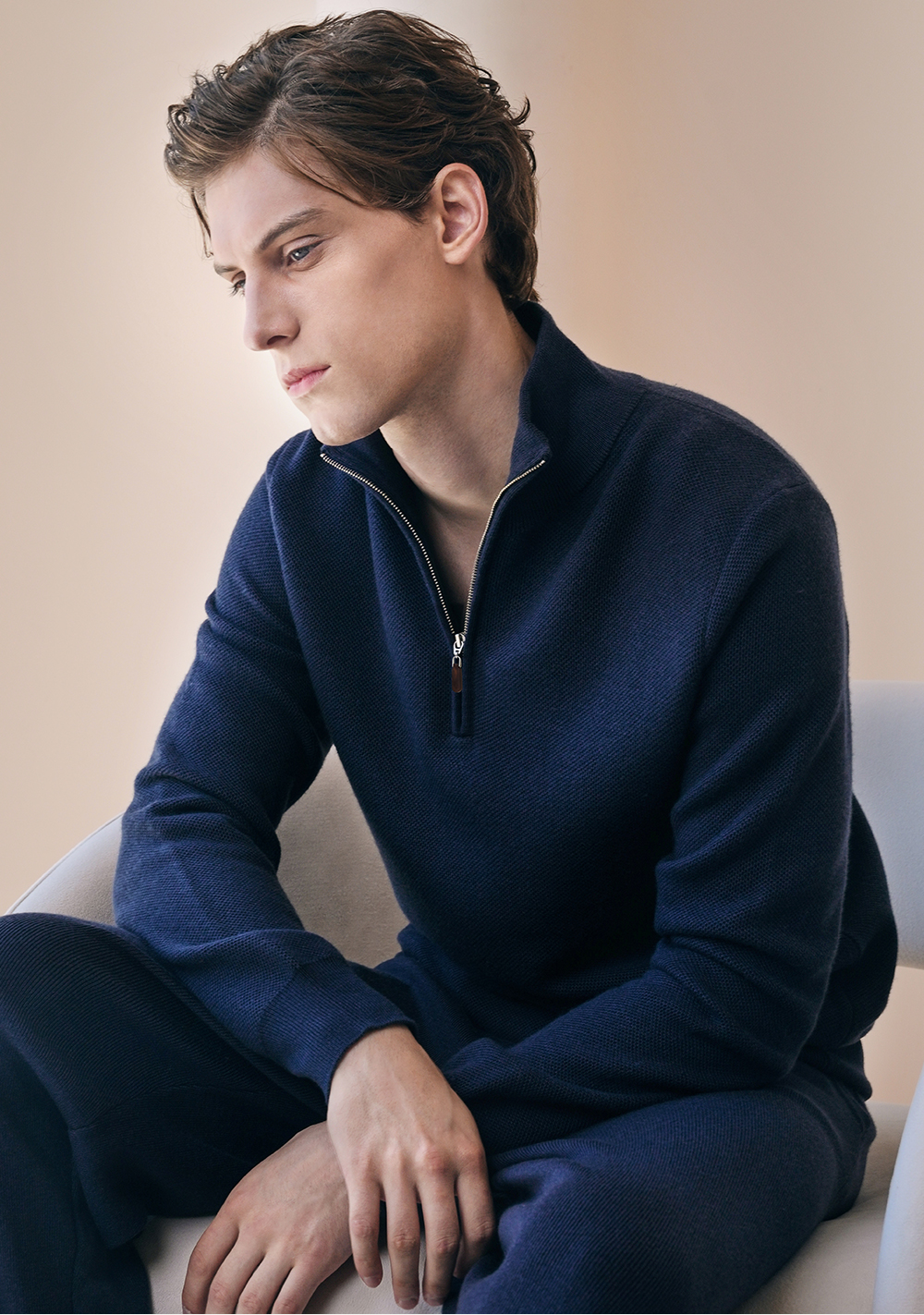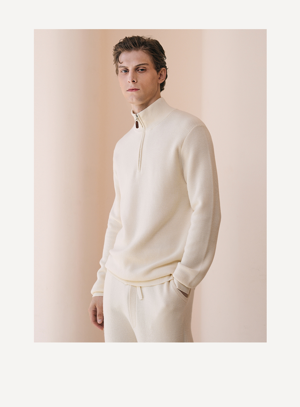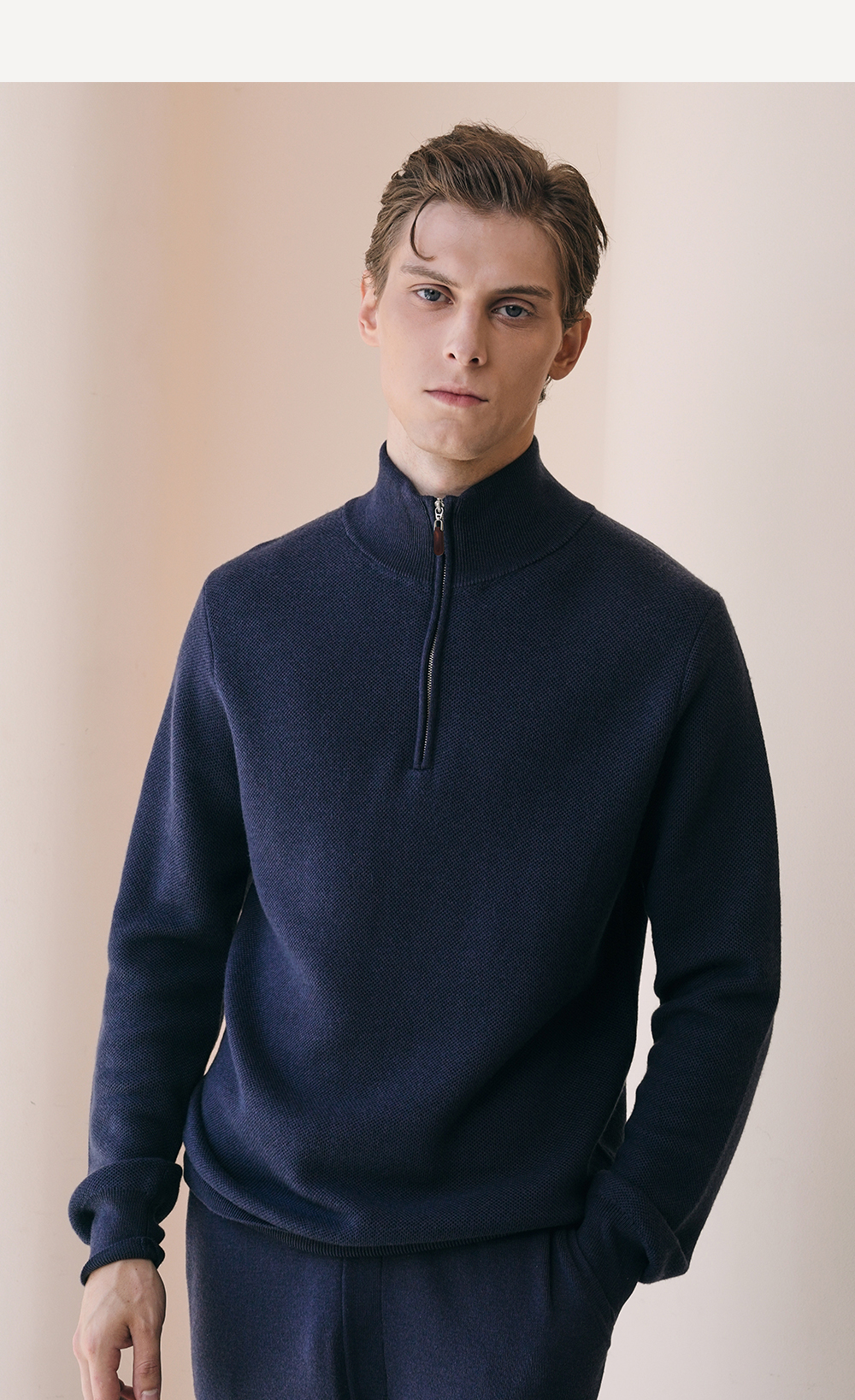 Solo seta男士纯色绵羊毛山羊绒桑蚕丝针织睡衣2026春季保暖上衣