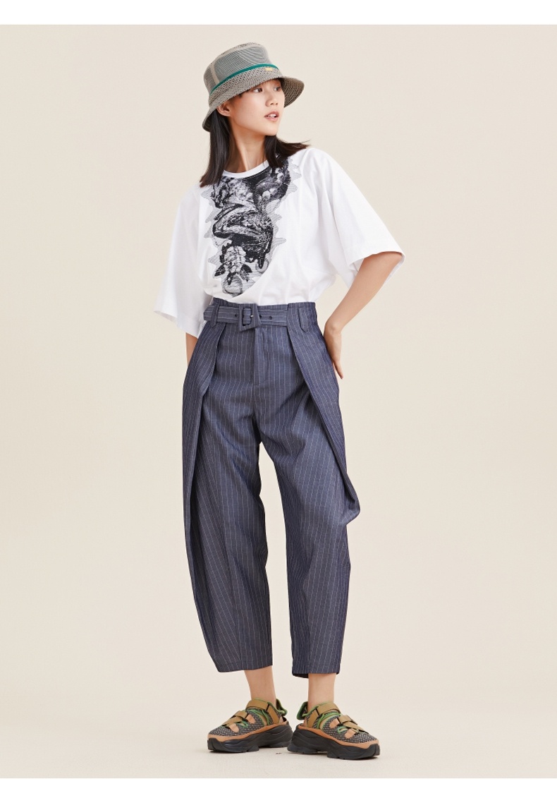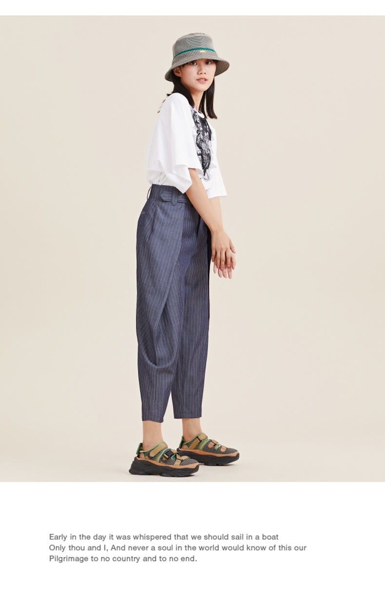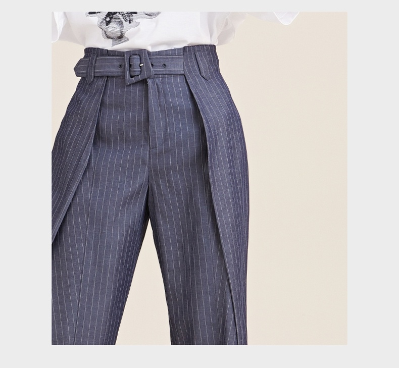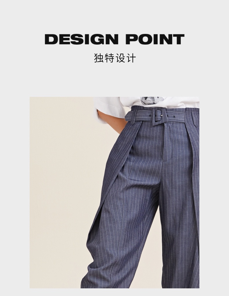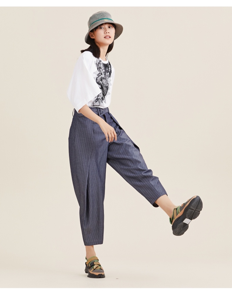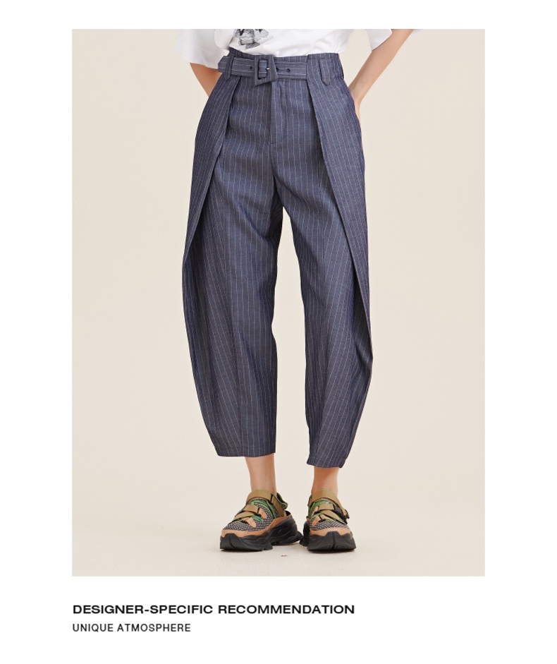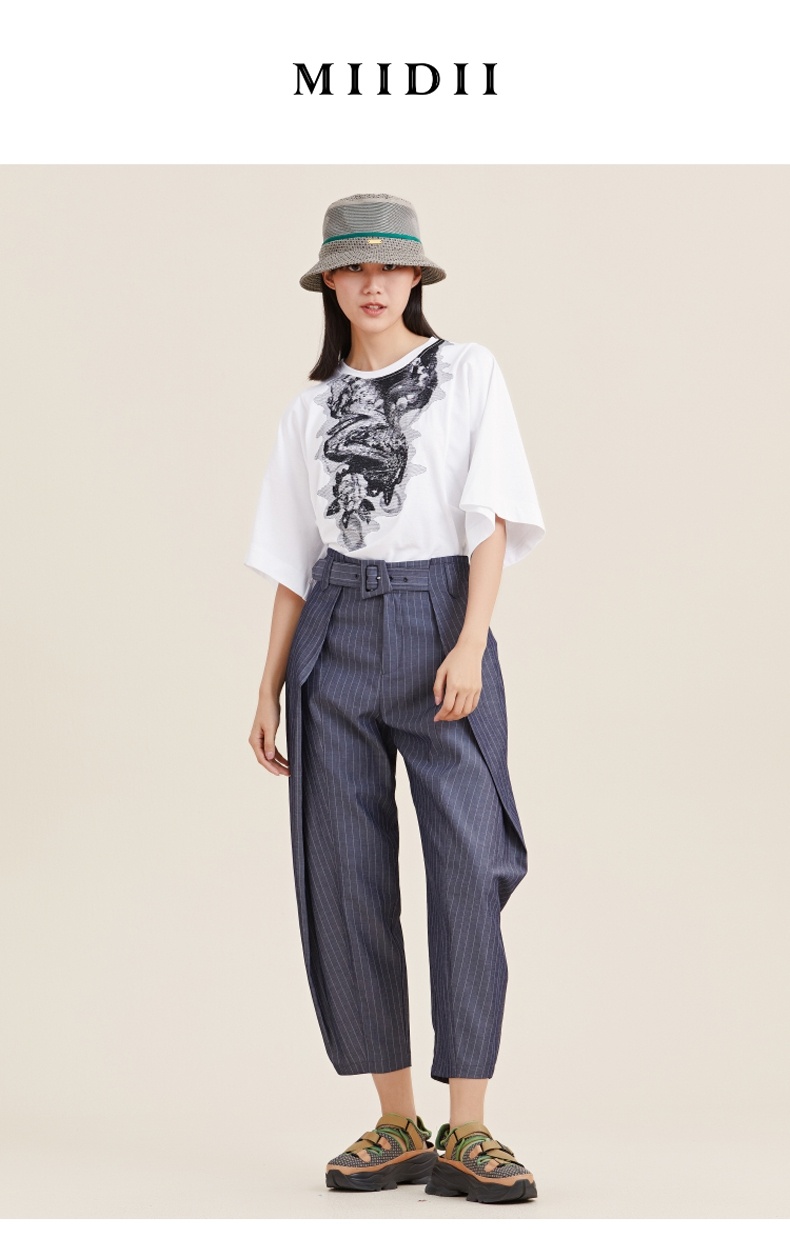 MIIDII/谜底21夏新品大气时尚细条纹萝卜裤休闲西裤女212MK0948