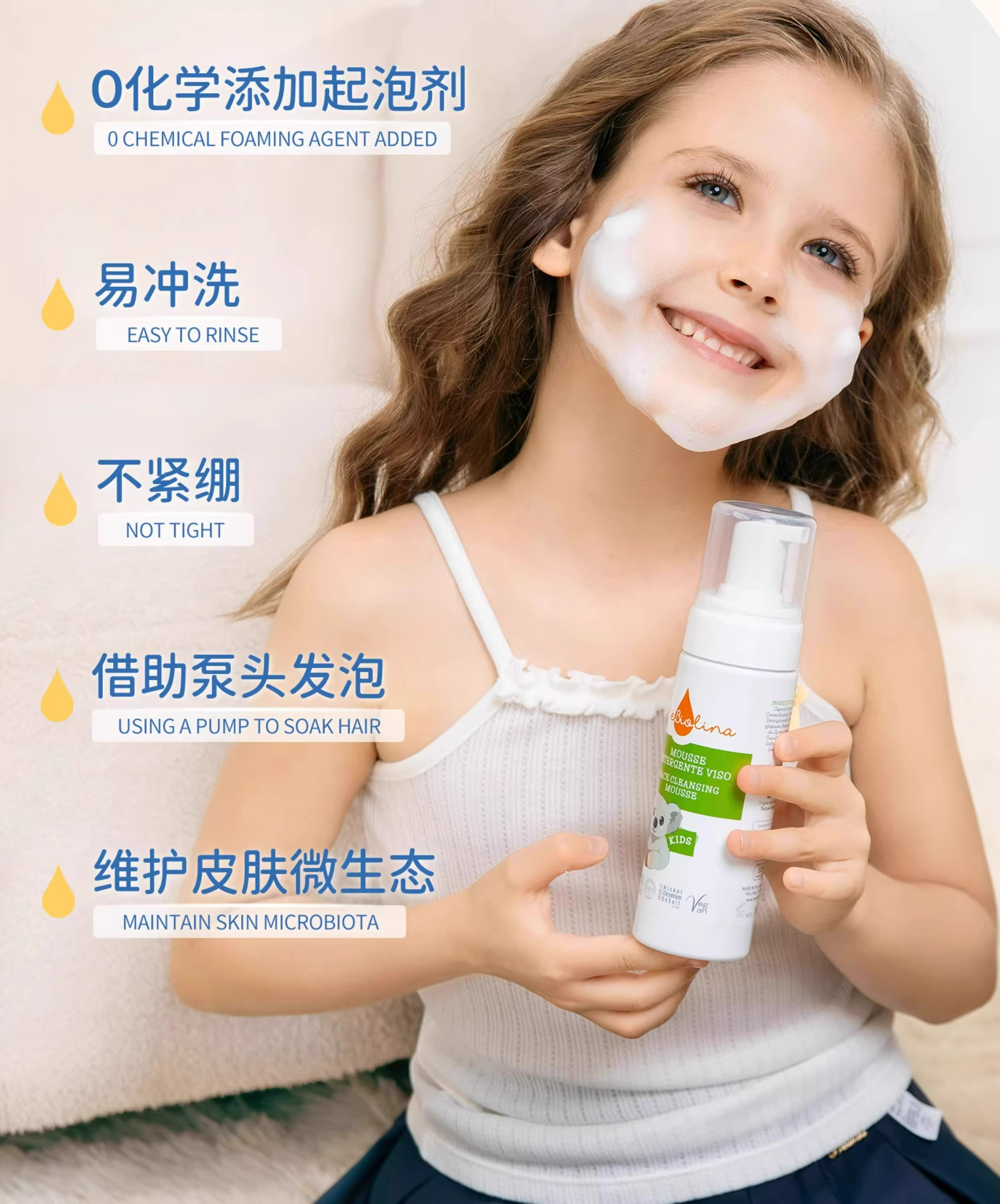 Nebiolina欧优乐儿童洗面奶女孩青少年男童专用洁面乳150ml