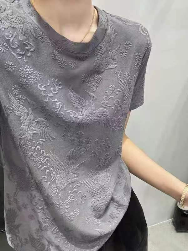 【国潮风 浮雕新工艺】圆领基础款百搭t恤短袖女MJ240048