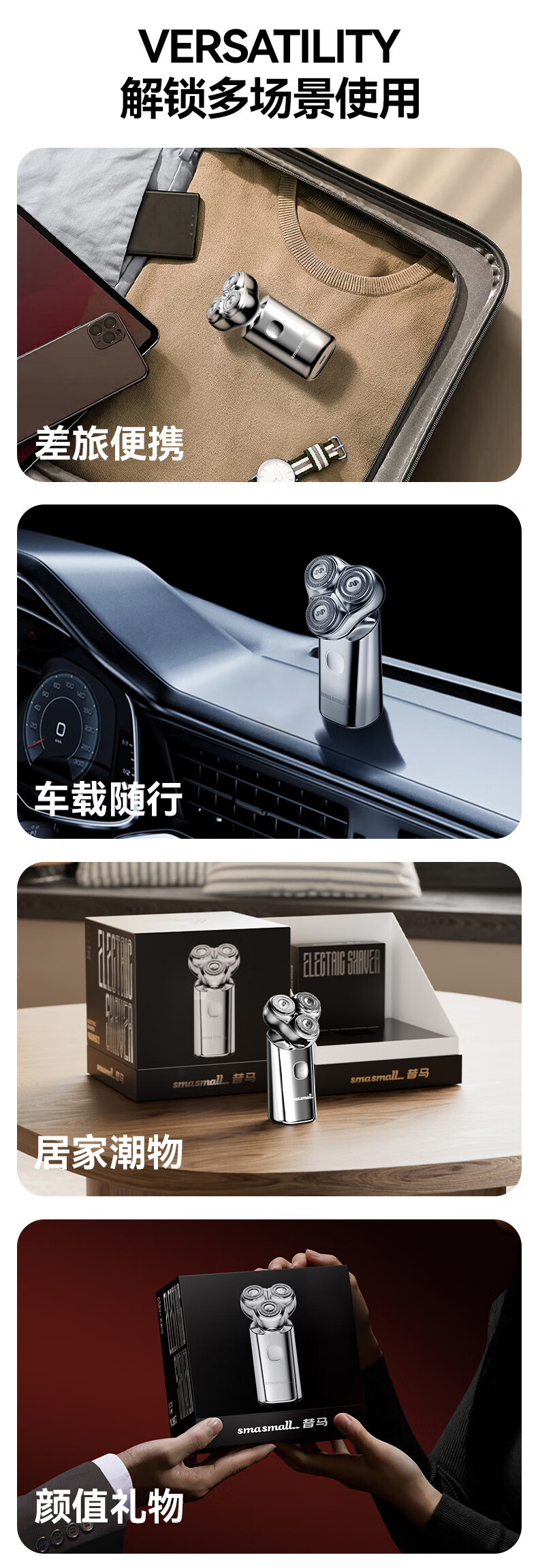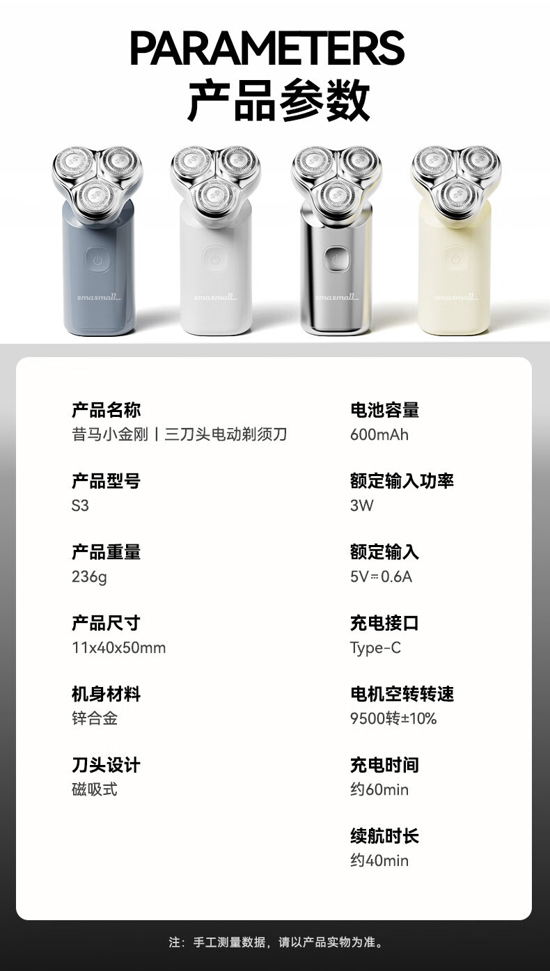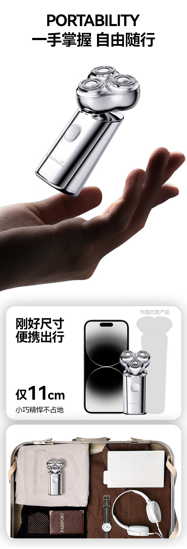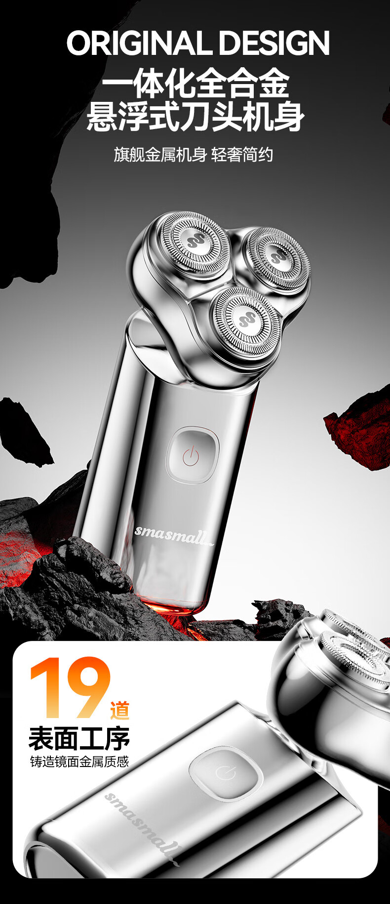 昔马(SMASMALL)电动剃须刀小金刚三头男士刮胡刀悬浮刀头全身水洗便携送老公男友情人节礼物 送礼佳品