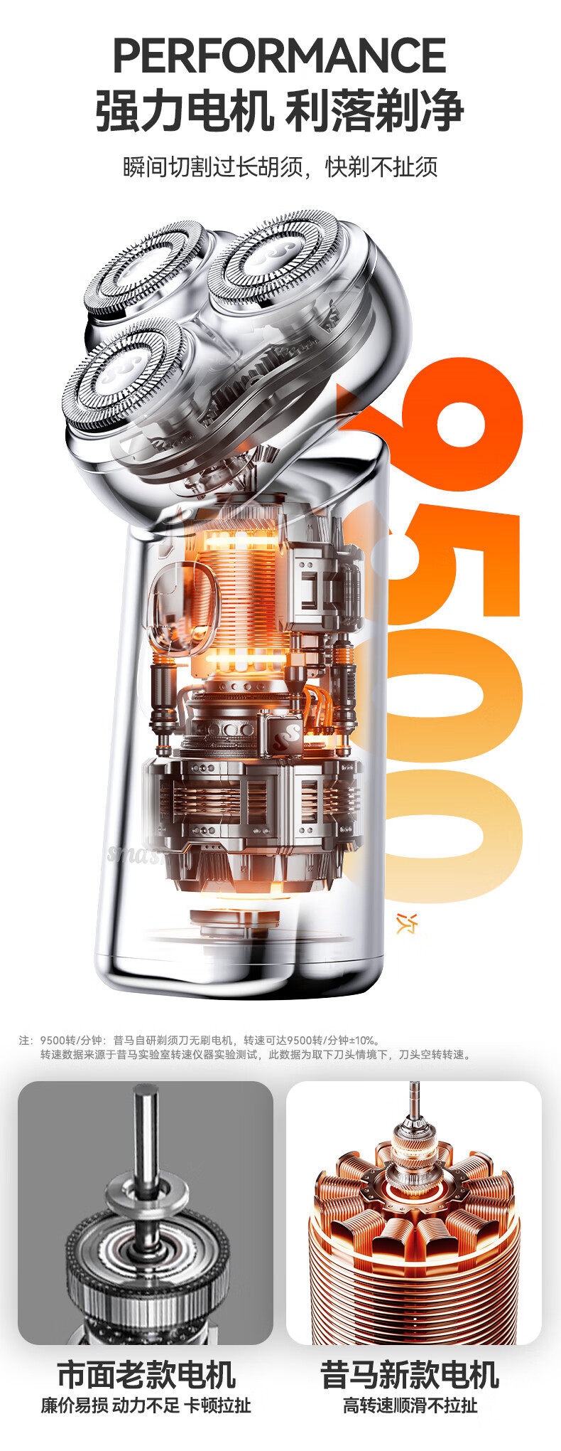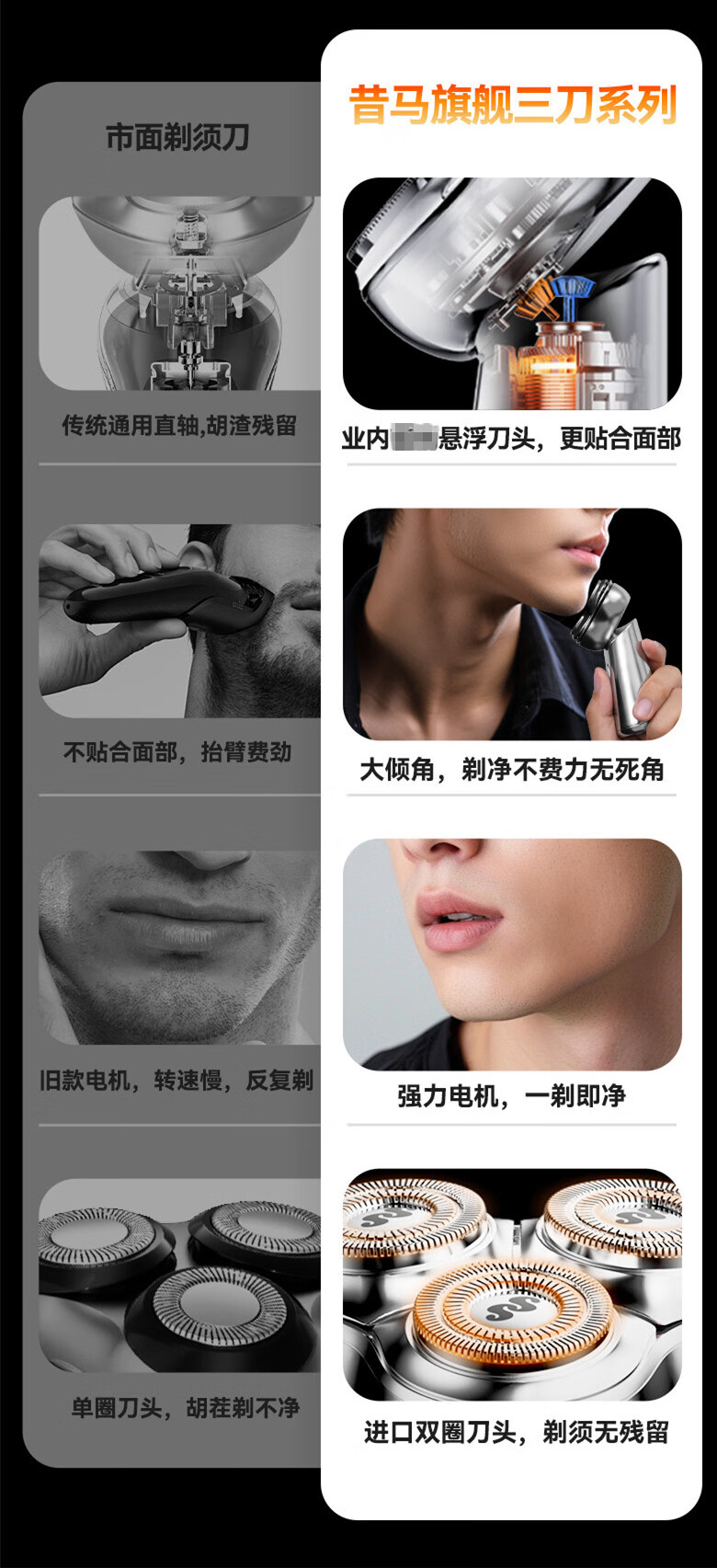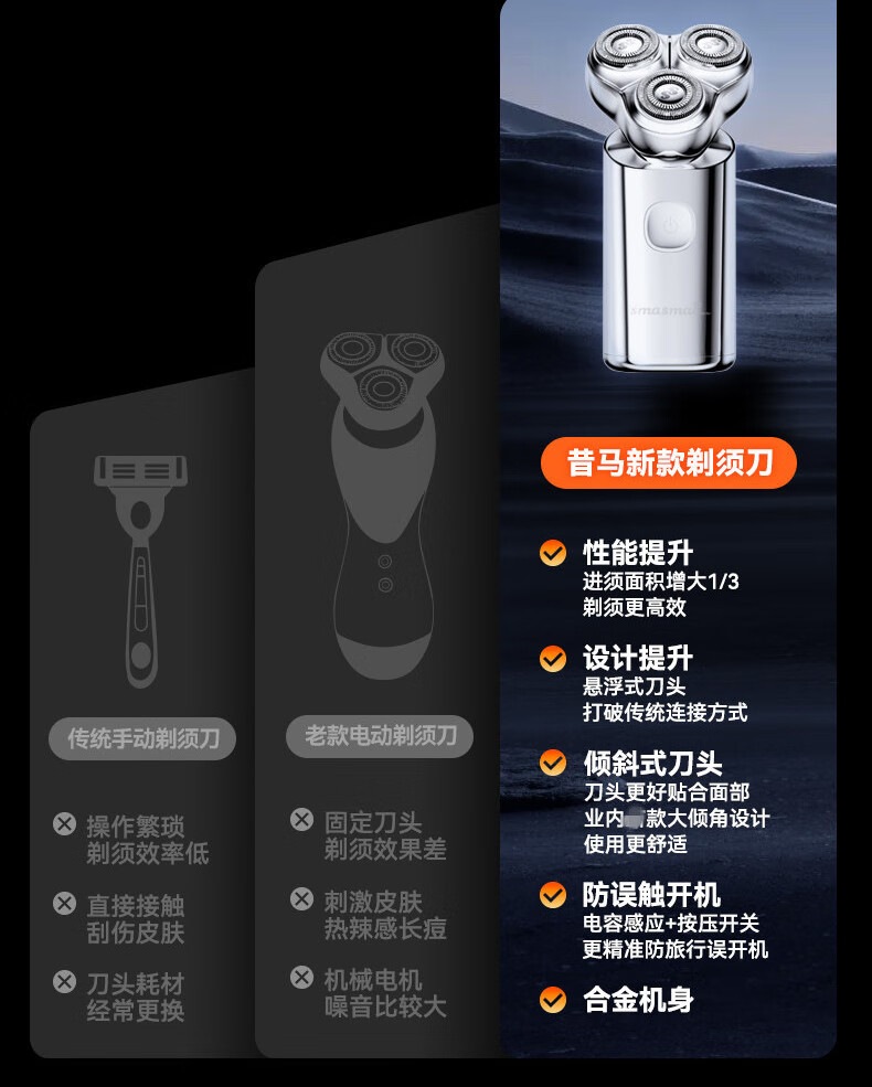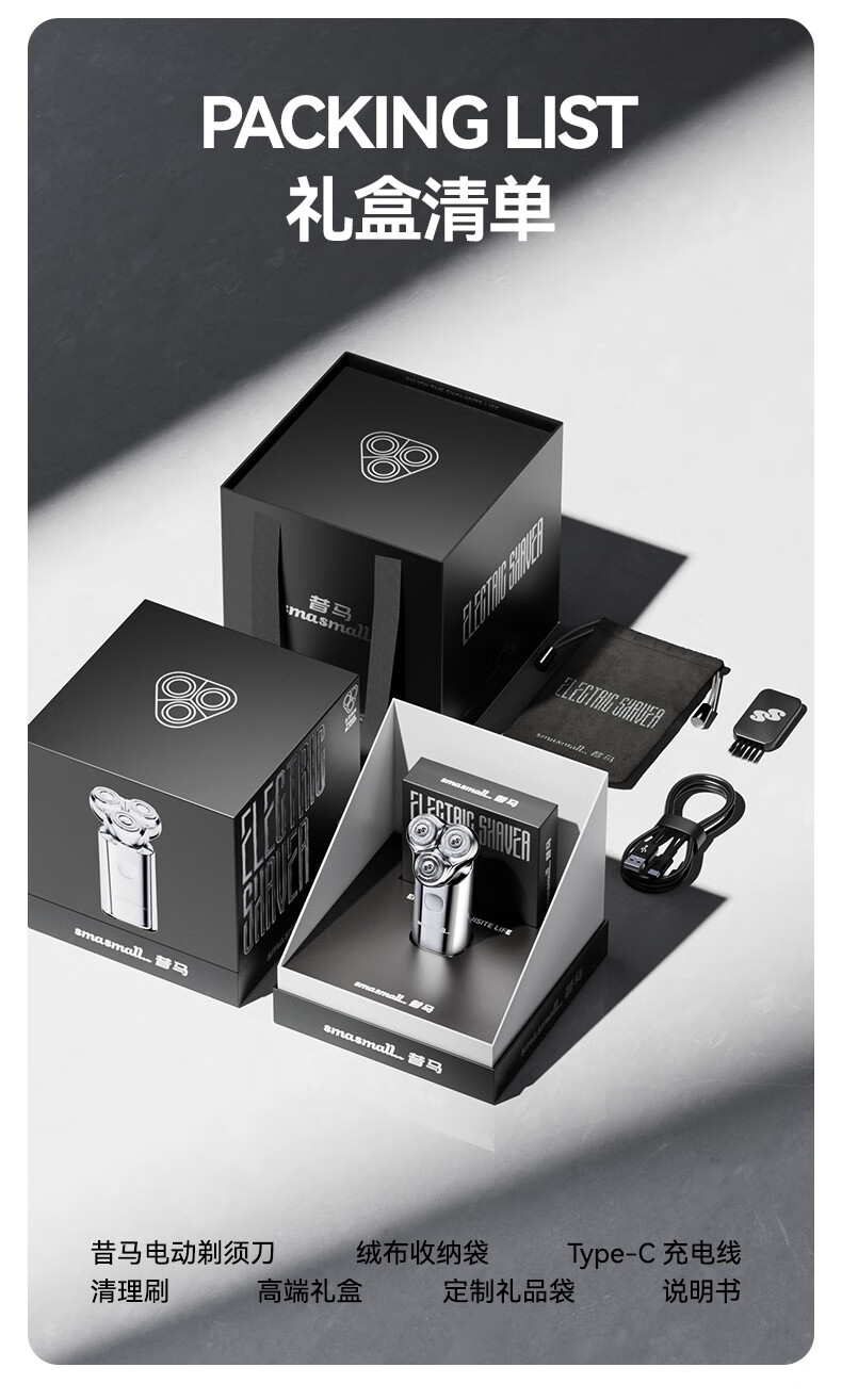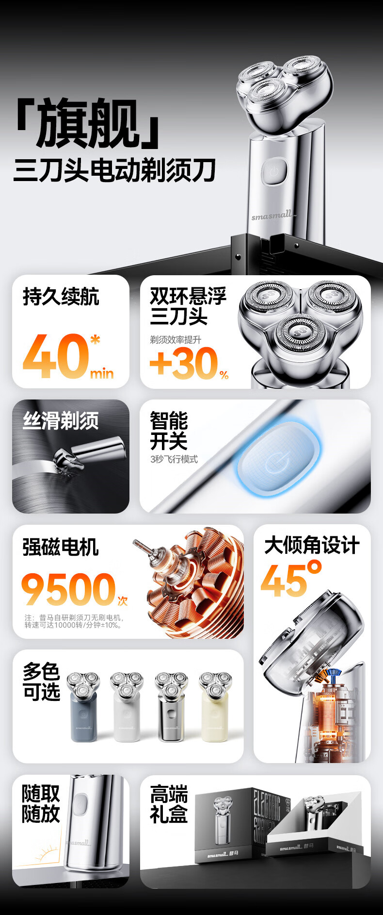 昔马(SMASMALL)电动剃须刀小金刚三头男士刮胡刀悬浮刀头全身水洗便携送老公男友情人节礼物 送礼佳品