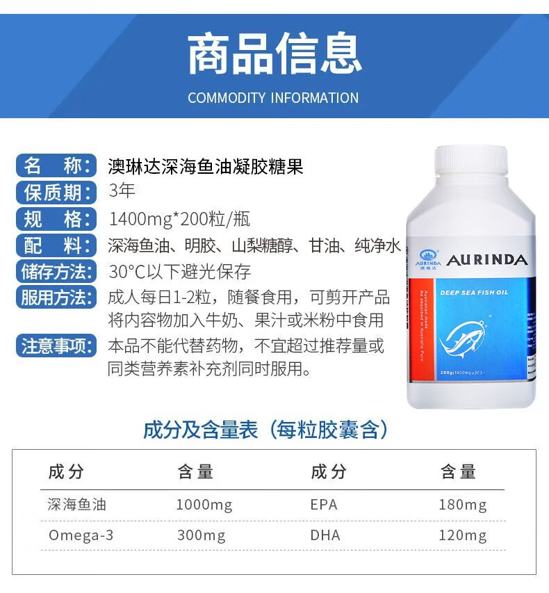Aurinda 澳琳达 深海鱼油凝胶糖果 200粒/瓶