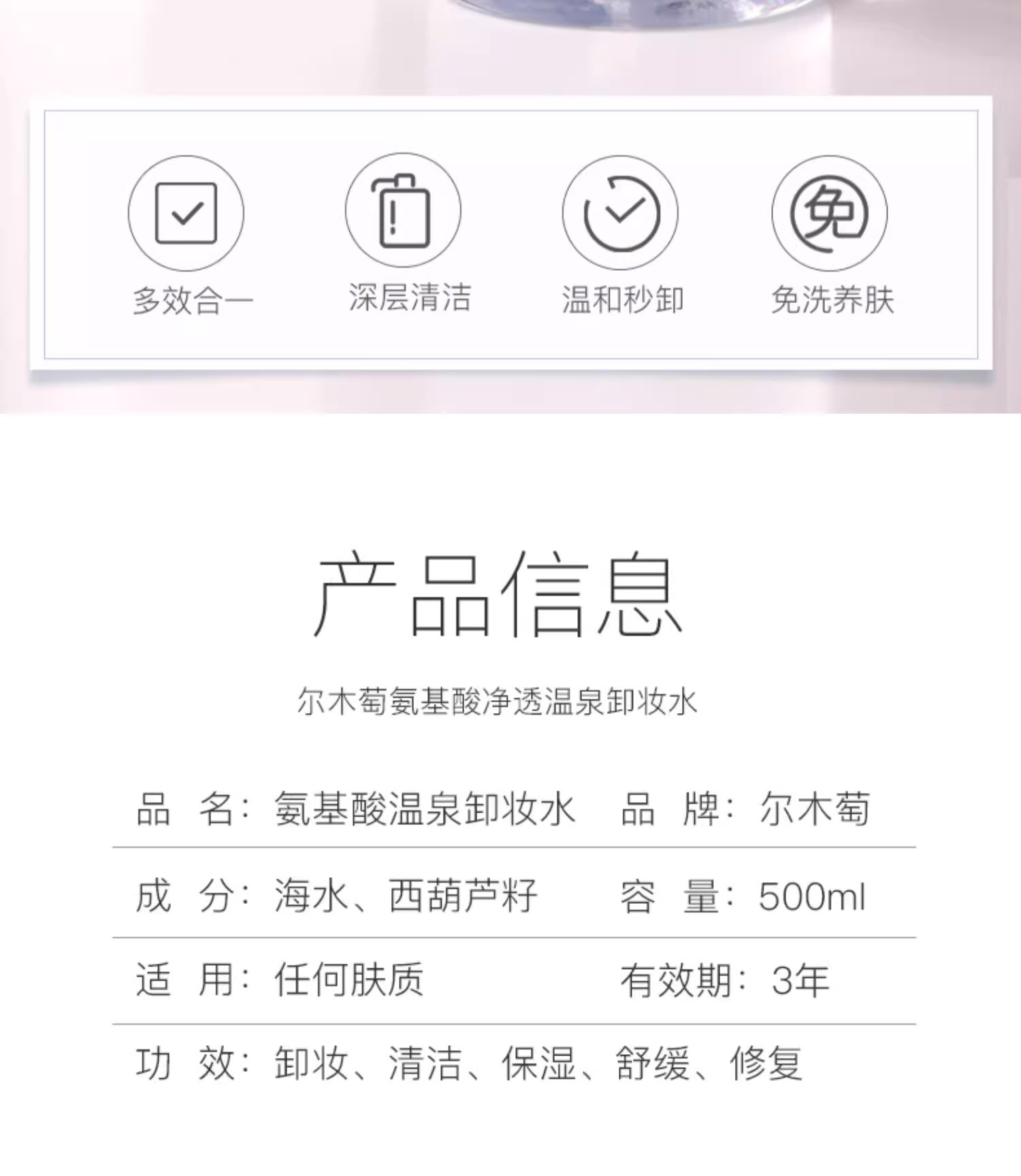 尔木萄卸妆水氨基酸净澈眼唇脸温和无残留三合一油乳液 心选到家