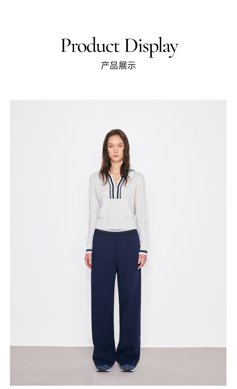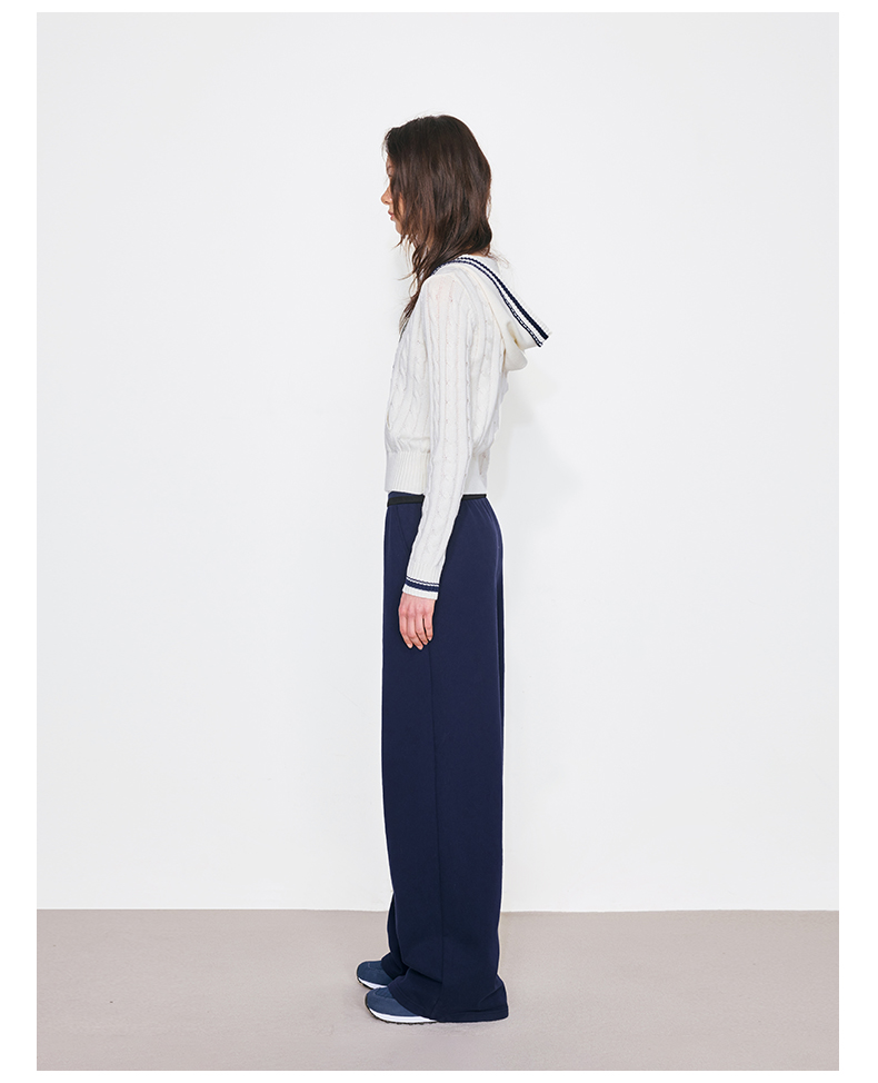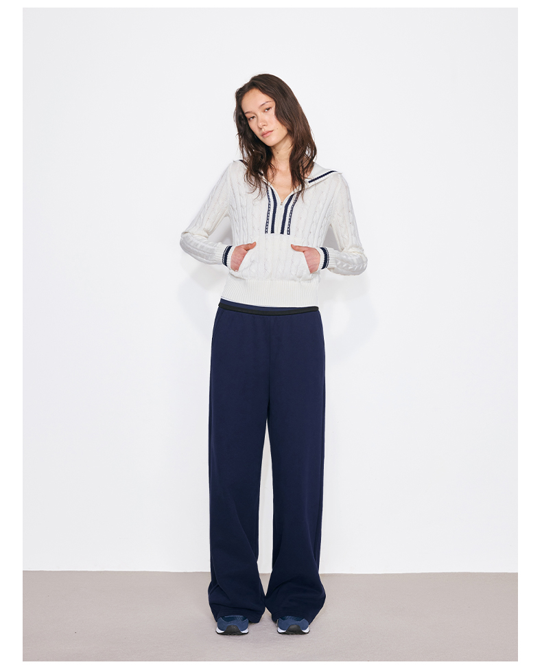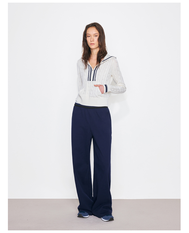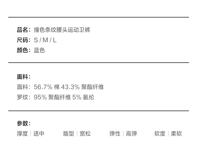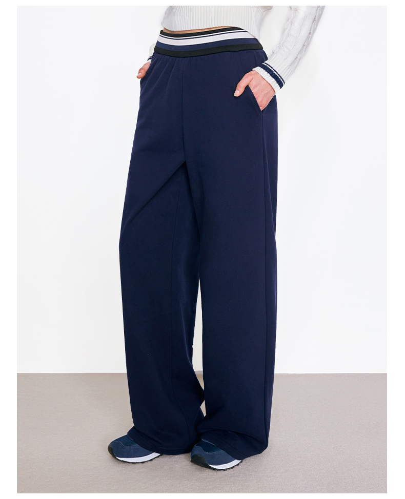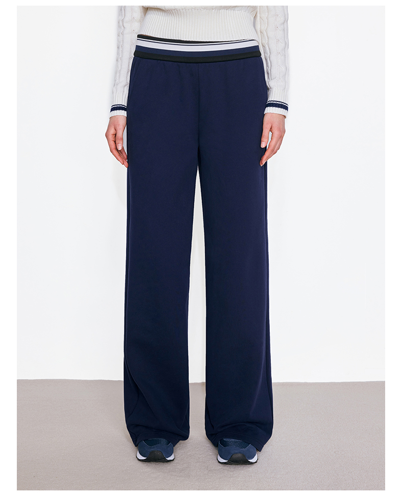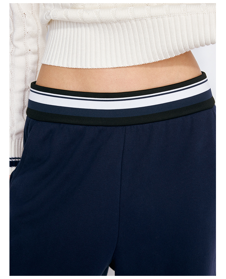 NUTH撞色条纹腰头运动休闲卫裤女 蓝色