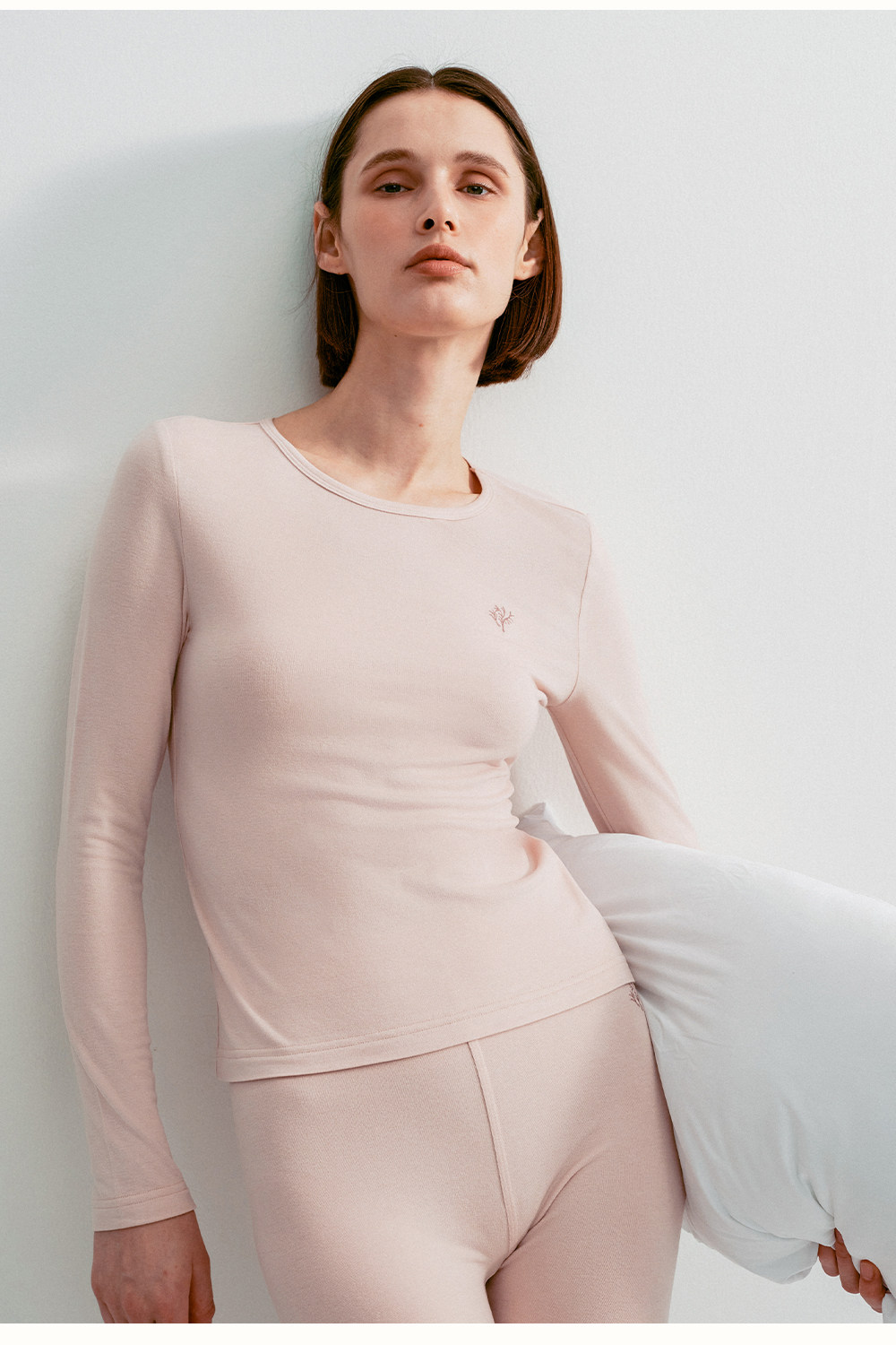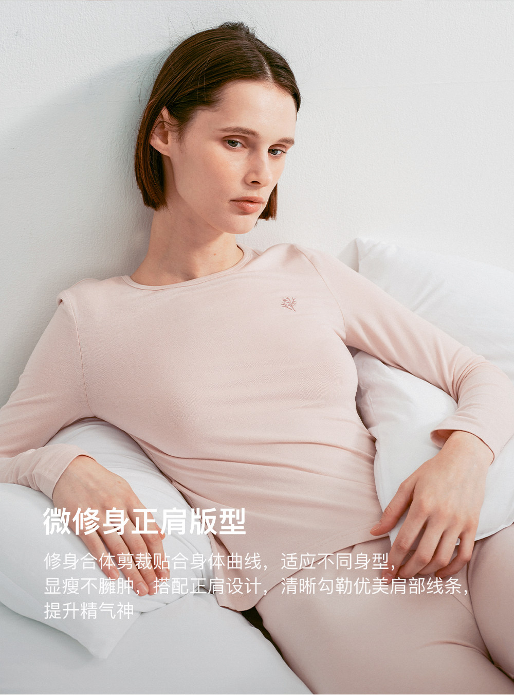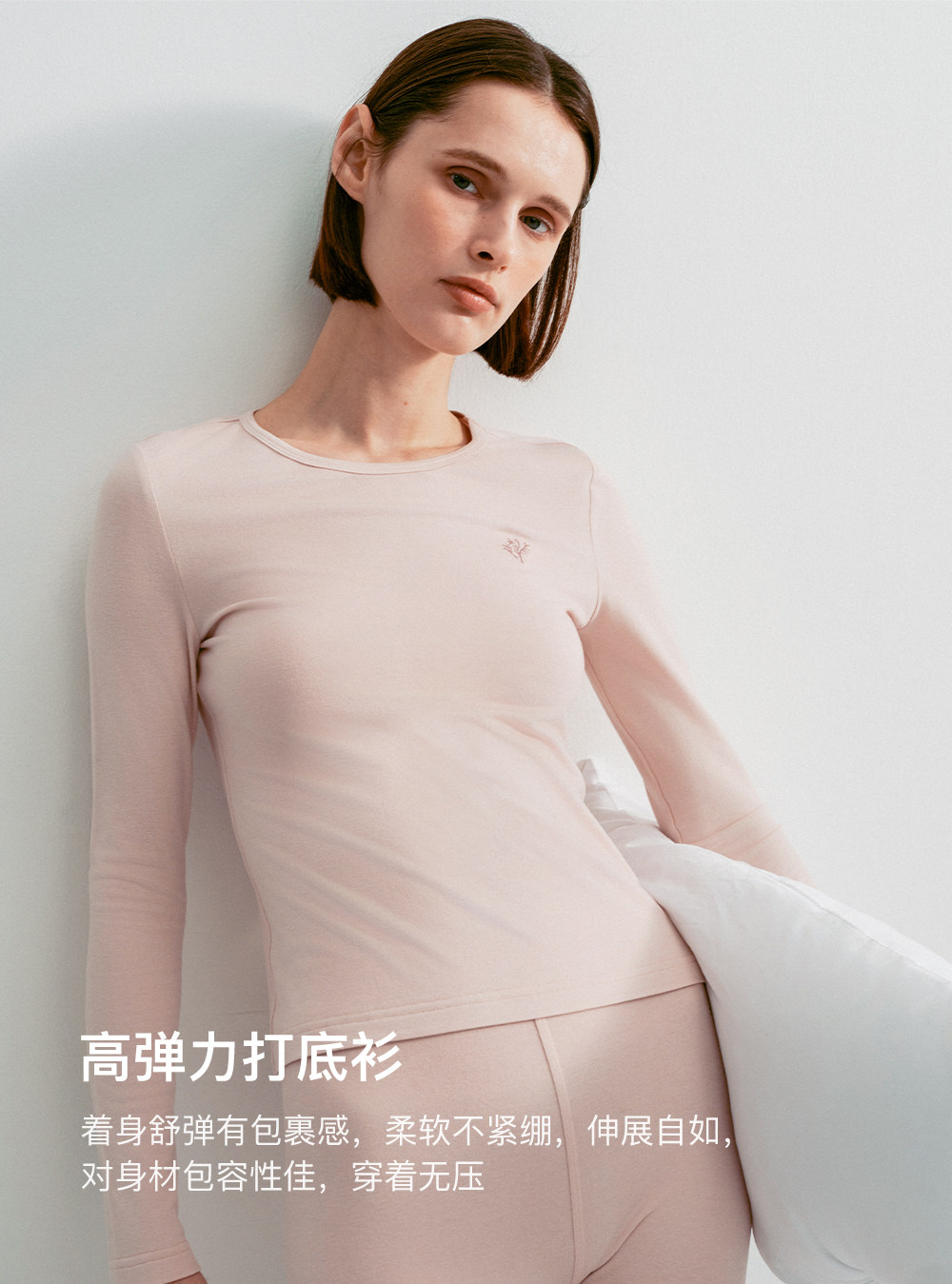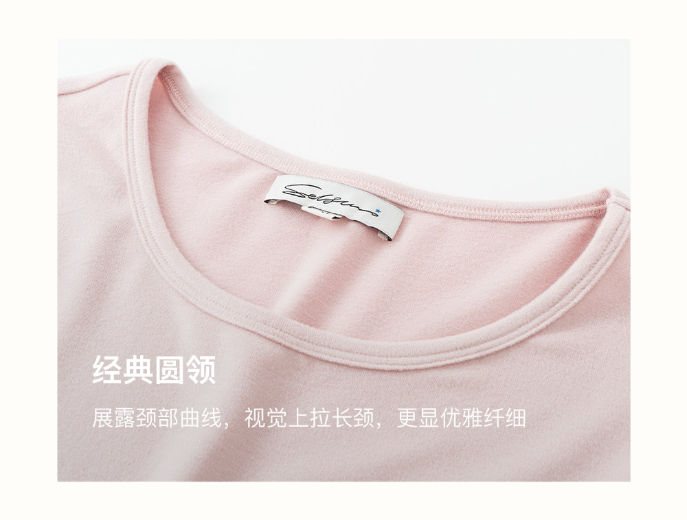 SELFWHO绵羊毛混纺撞色刺绣高弹打底衫女2025冬新款修身正肩上衣