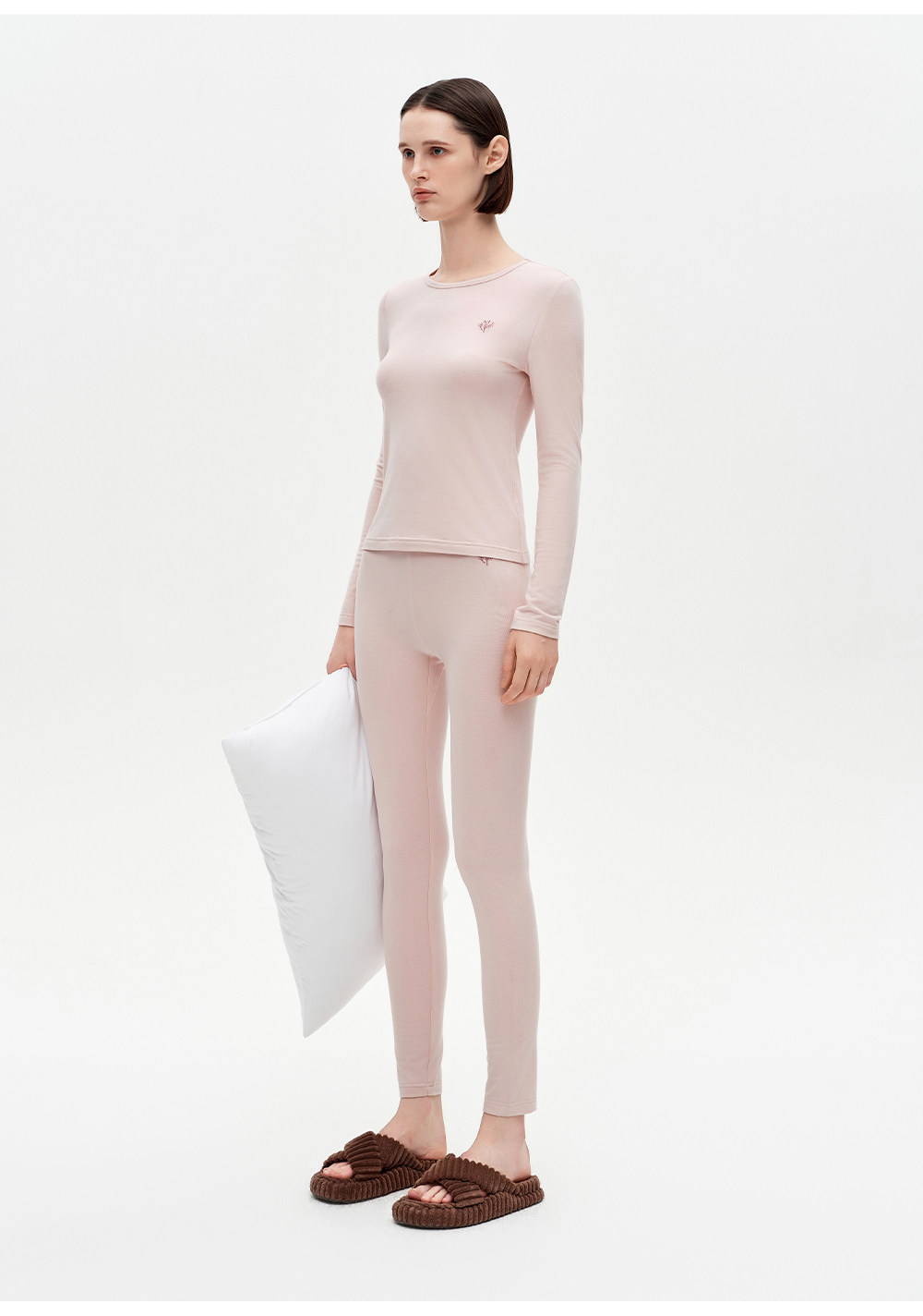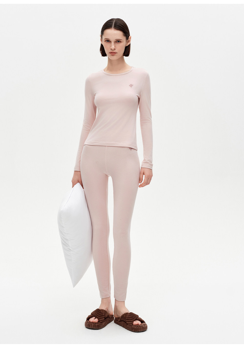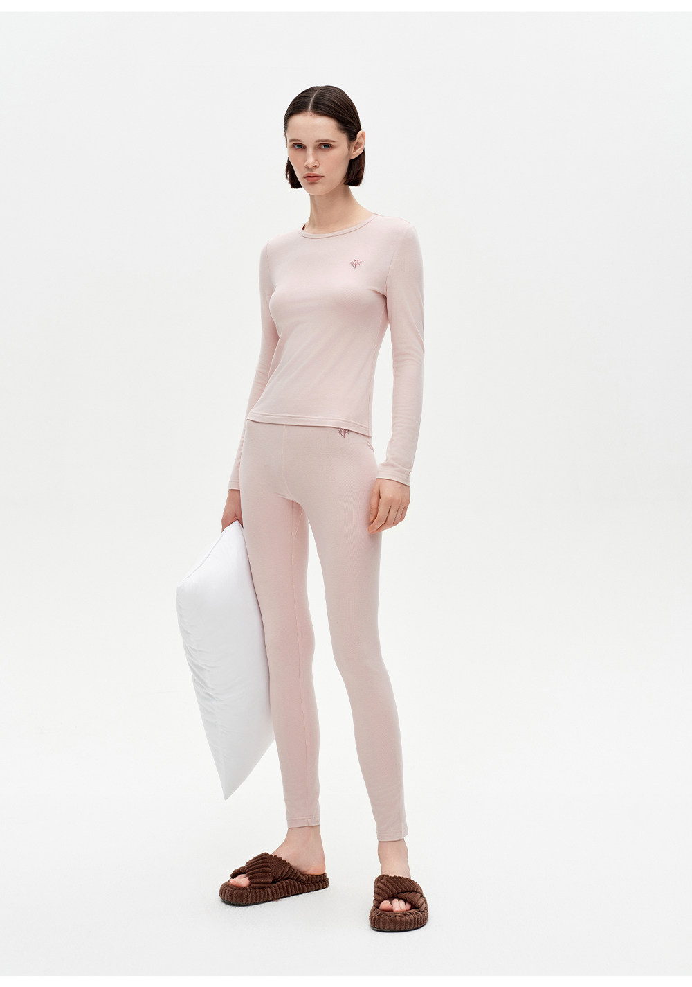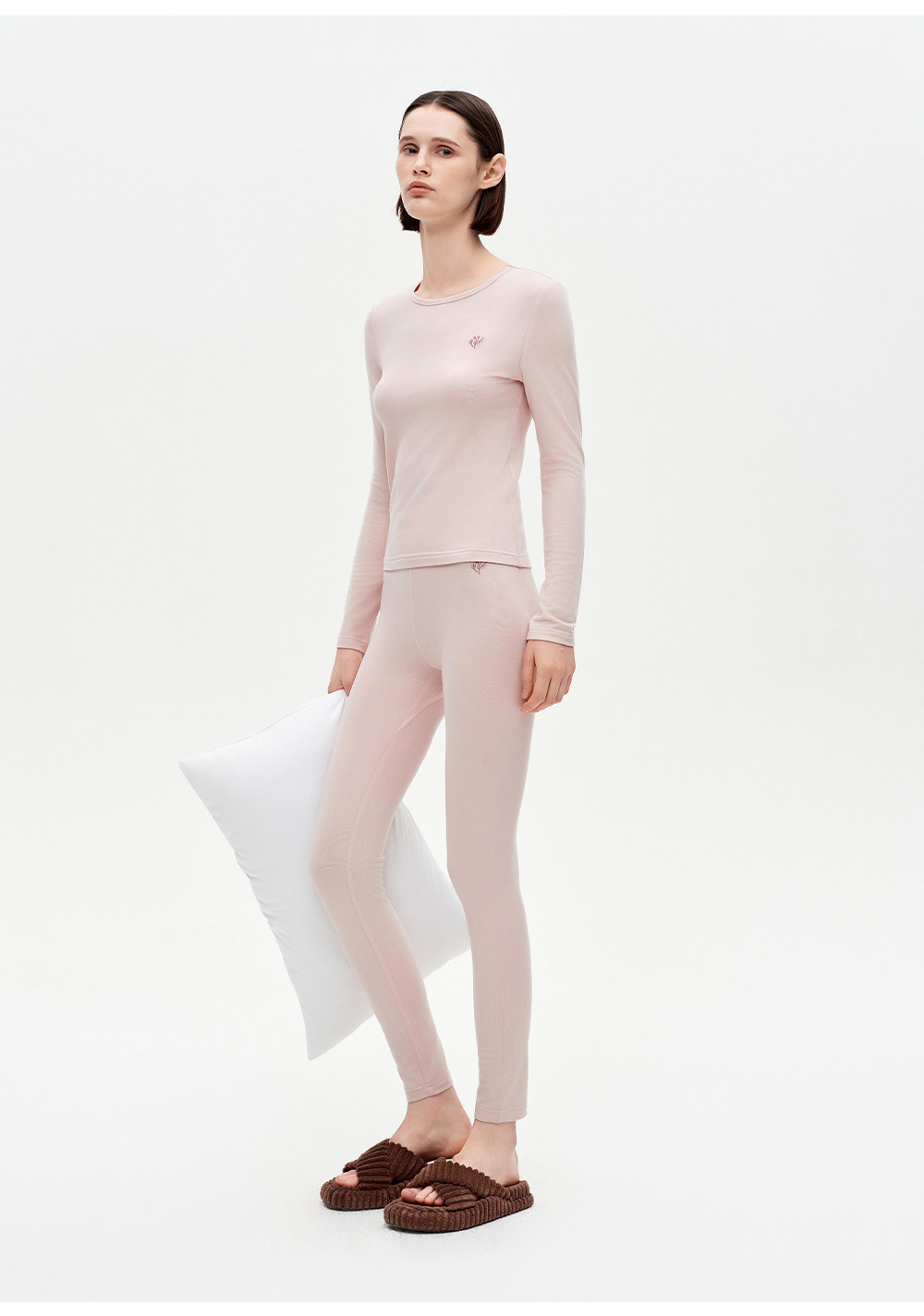 SELFWHO绵羊毛混纺撞色刺绣高弹打底衫女2025冬新款修身正肩上衣