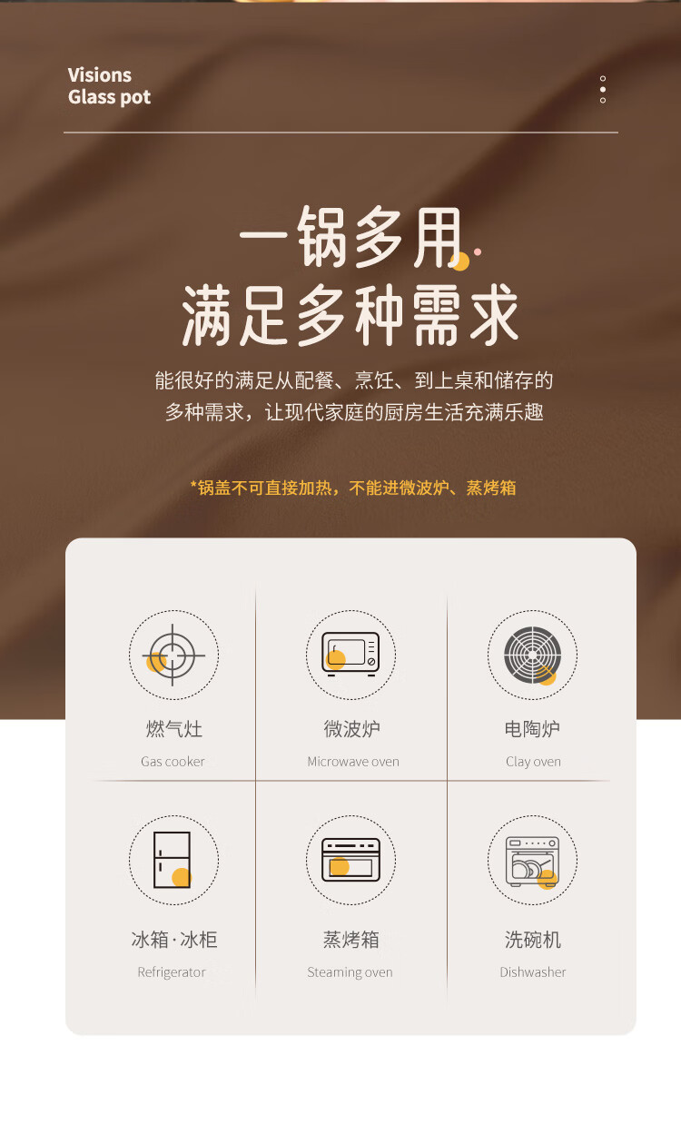 康宁 VISIONS晶彩系列透明锅--1.25L