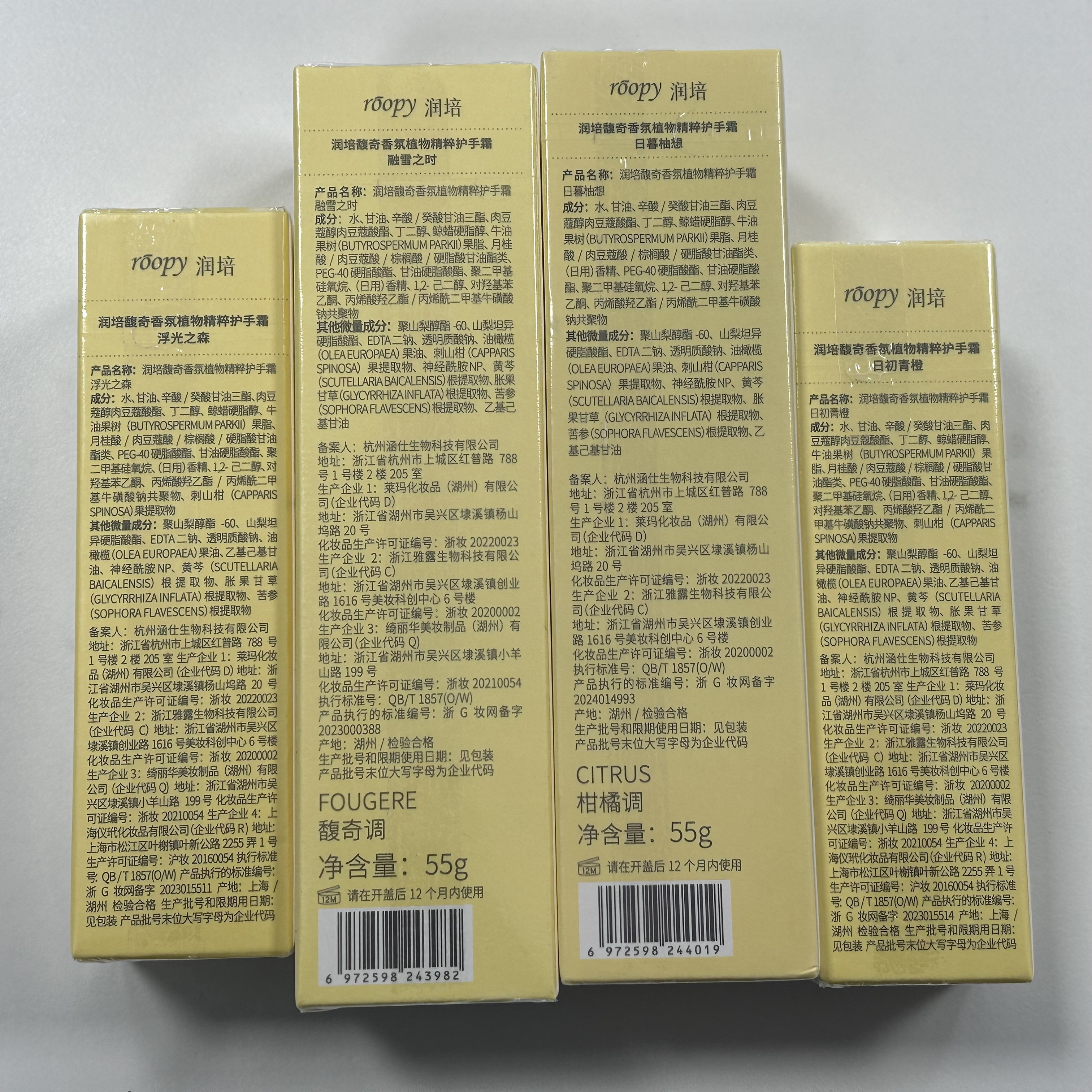 有4支不同香味的护手霜