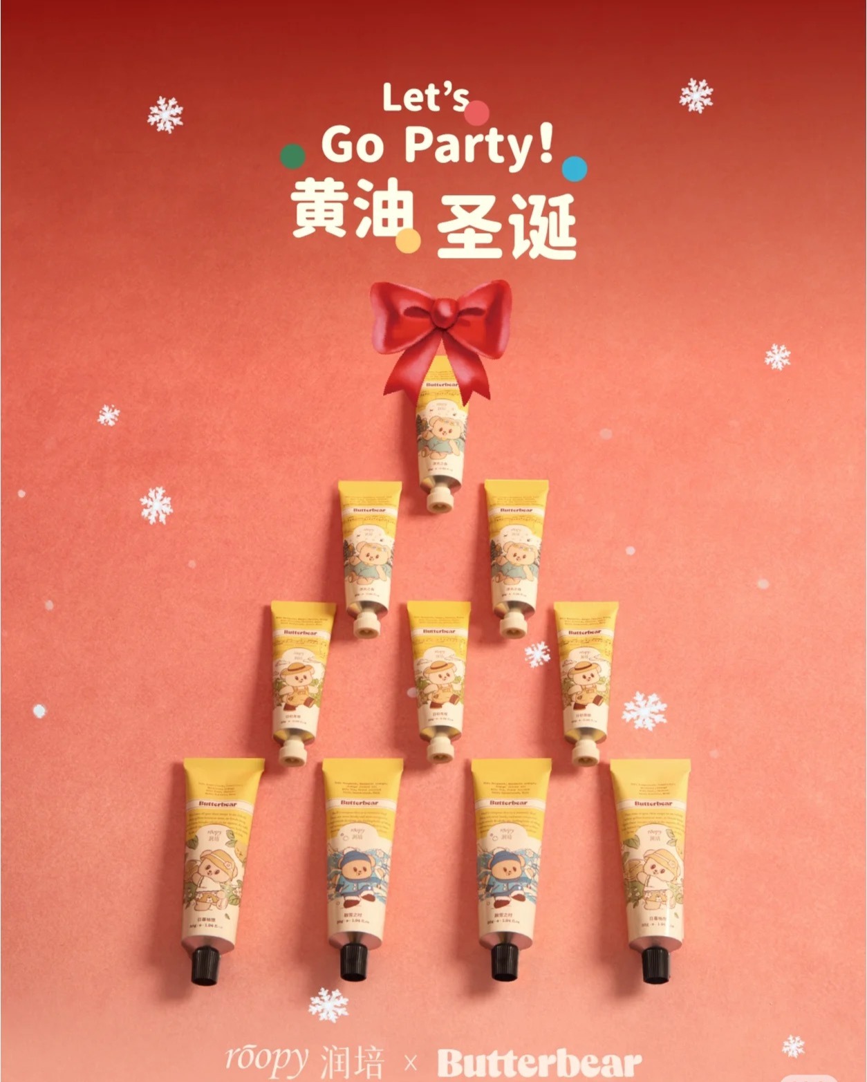 四款温暖香气手霜一盒呈现🐻【润培&黄油小熊联名圣诞礼盒】黄油圣诞 Let's Go Party!🎄护手霜礼盒颜值+实用双层叠buff!