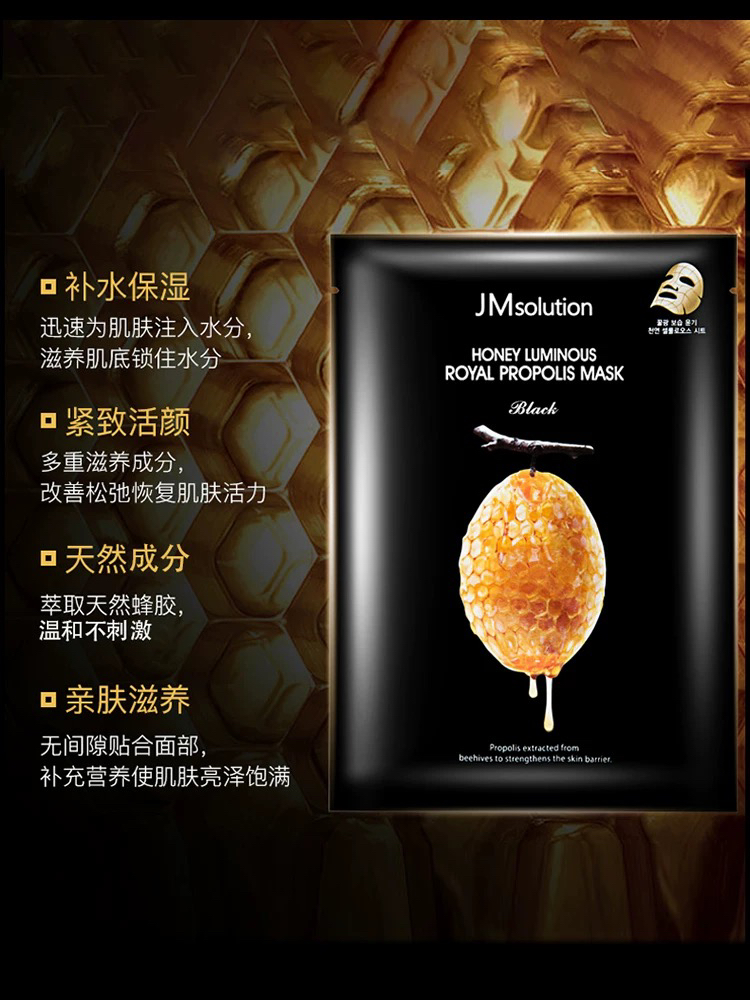 【2件5折】JMS肌司研莹润蜂胶面膜(黑臻版) 10片