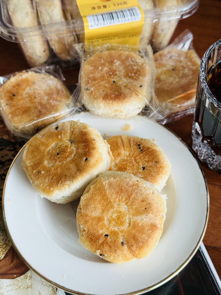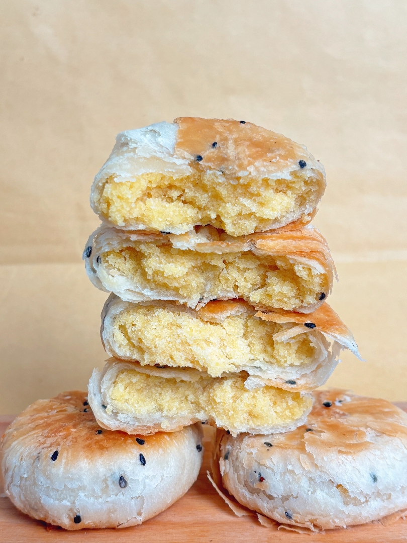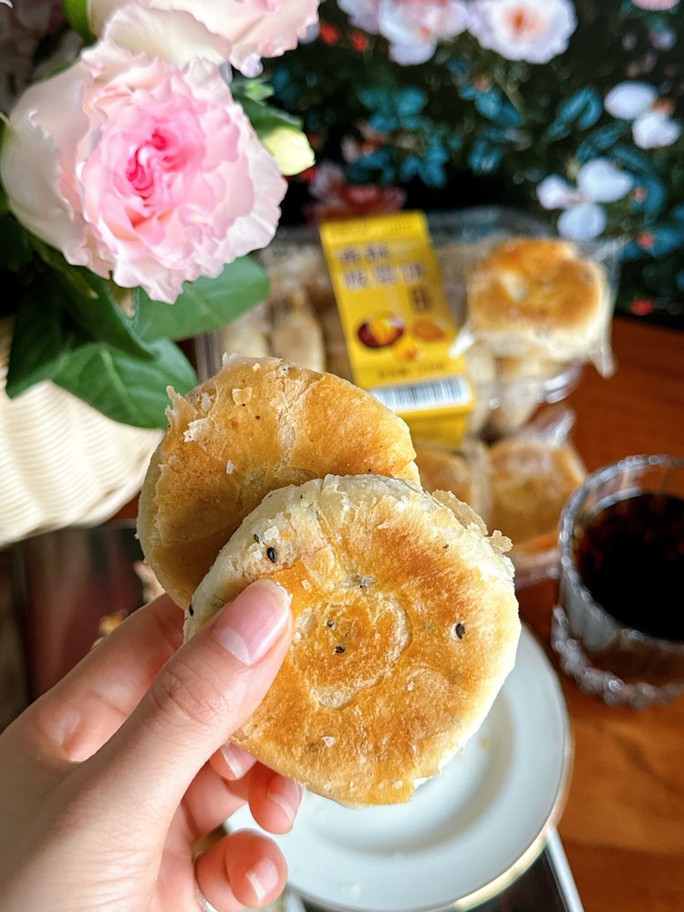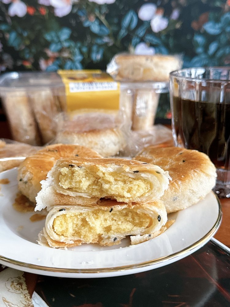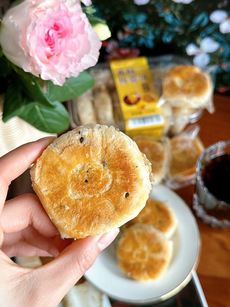 酥皮外撒放着些许熟黑芝麻,越嚼越香