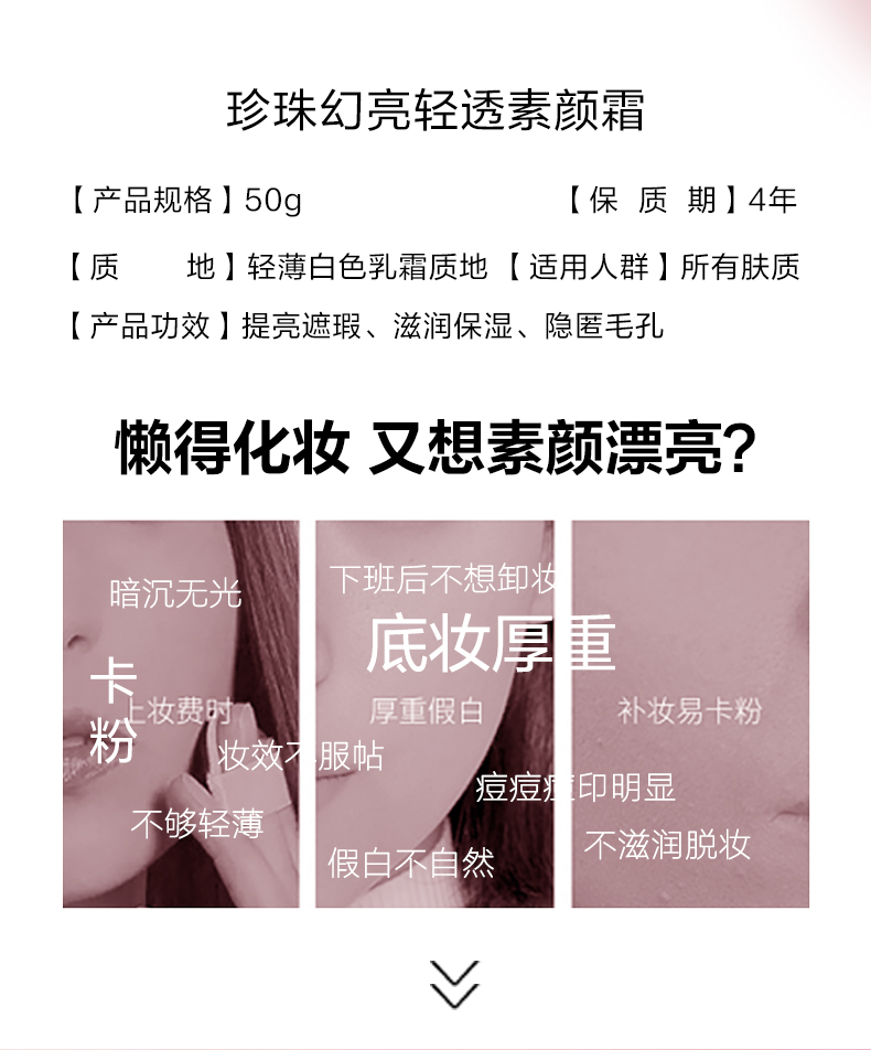 优选丨 欧诗漫珍珠幻亮清透素颜霜50g 自然不假白 轻盈好推开