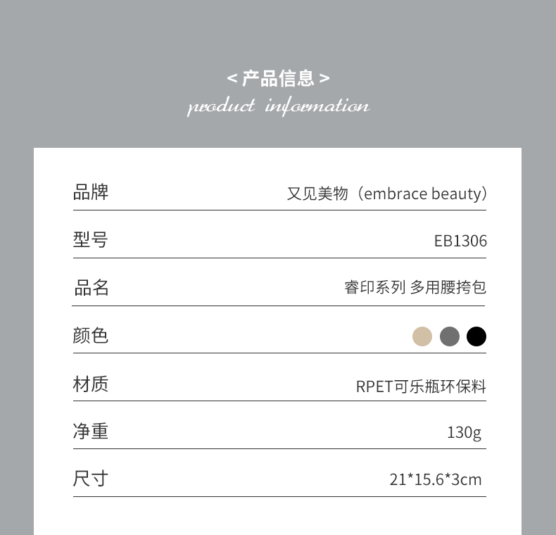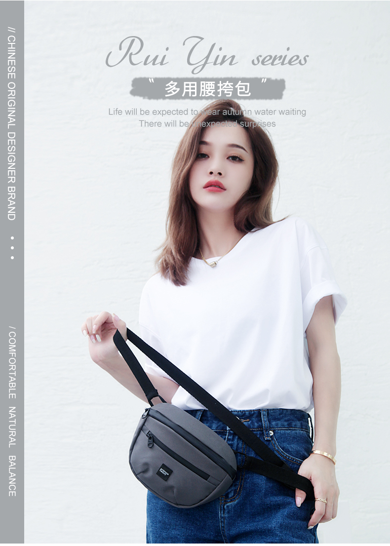 又见美物 潮流斜挎包男女情侣腰包单肩休闲运动大学生防泼水休闲胸包 EB1306