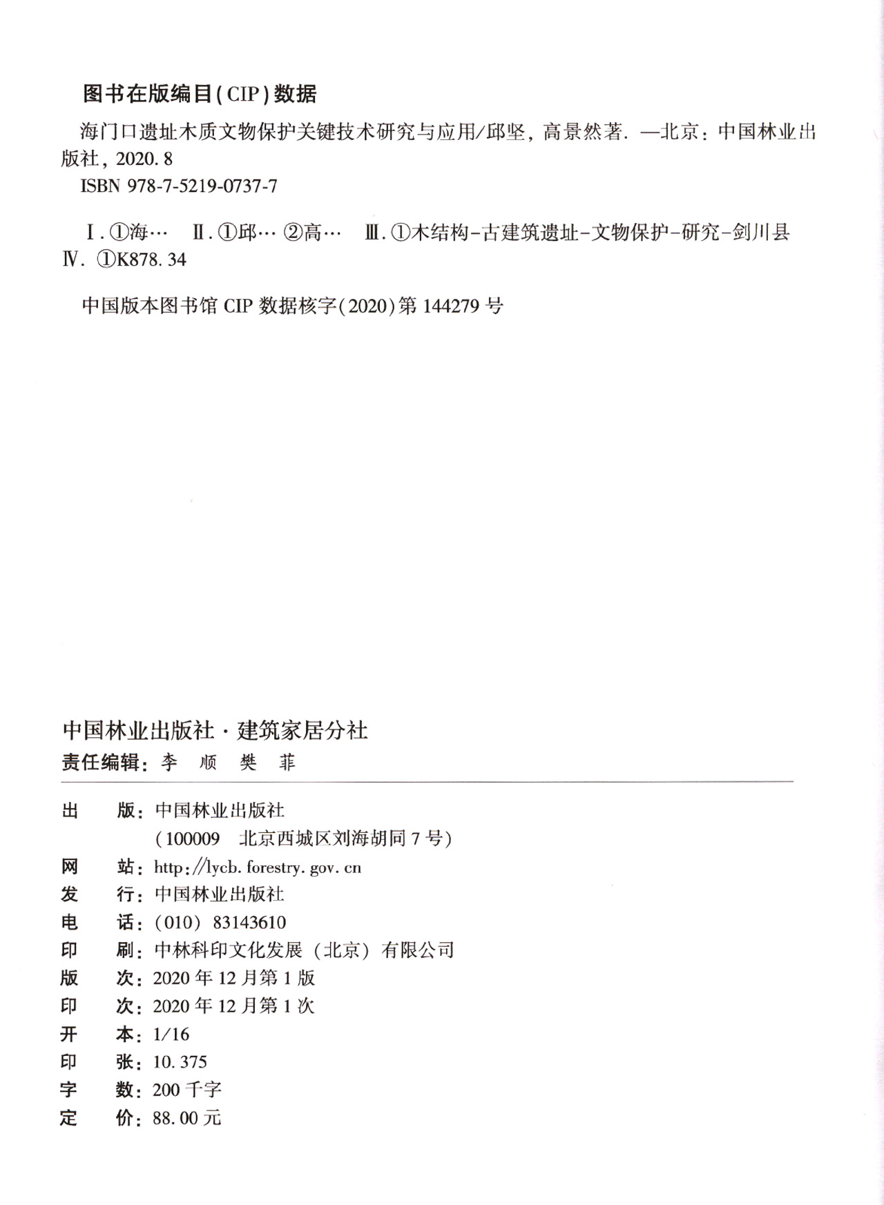 海门口遗址木质文物保护关键技术研究与应用 邱坚//高景然 0737 中国林业出版社