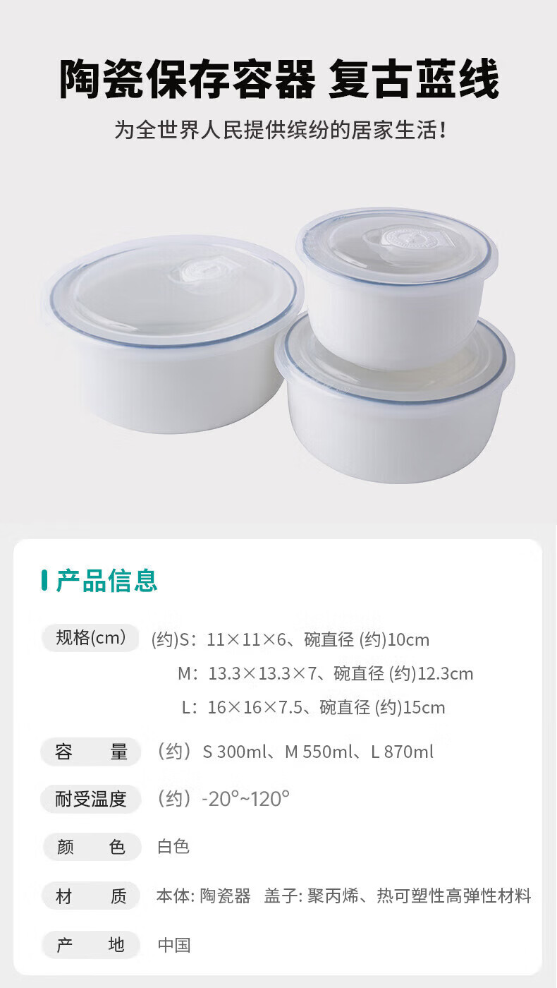 陶瓷保存容器 复古蓝线 S/M/L