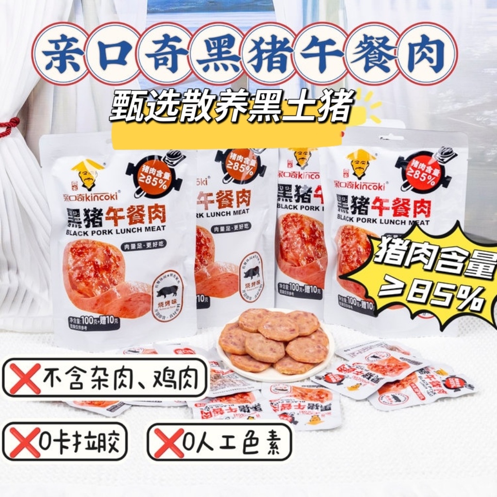【亲口奇黑猪午餐肉】高品质散养黑土猪,猪肉含量≥85%!😋鲜嫩多汁~ ✅甄选高品质散养黑猪,肉质拔尖~ ✅纯猪肉含量≥85%,不掺鸡肉、杂肉~