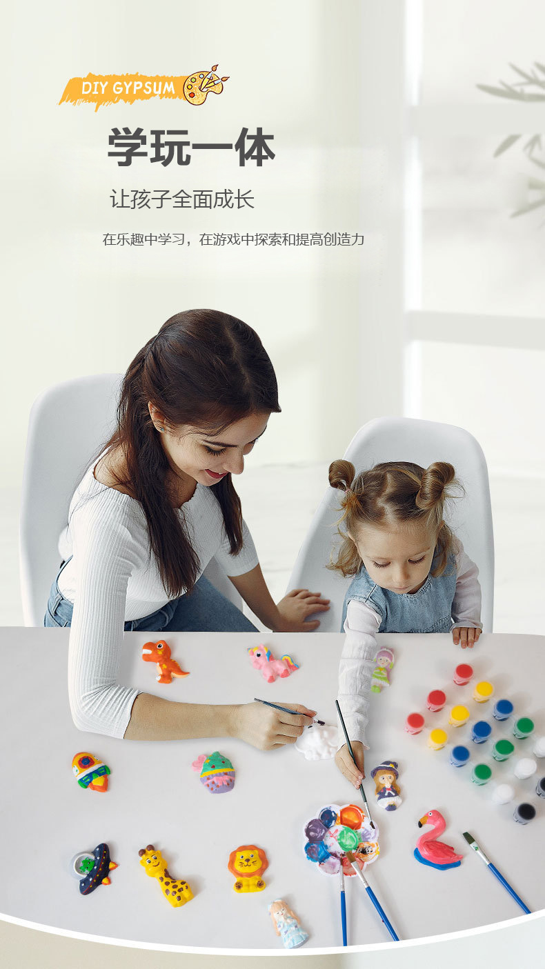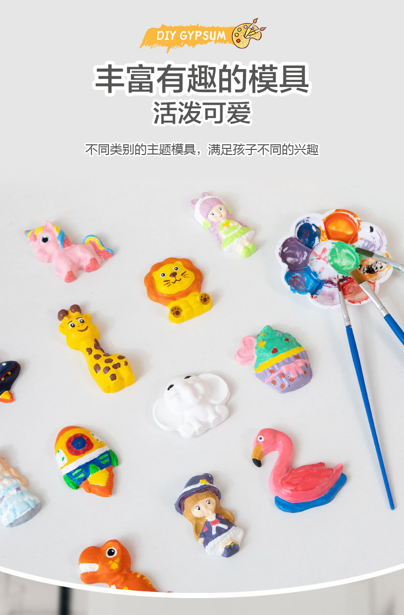 【DIY模型彩绘石膏!儿童创意玩具】儿童石膏彩绘画创意手工diy立体模型涂鸦上色冰箱贴涂色娃娃玩具-QQ