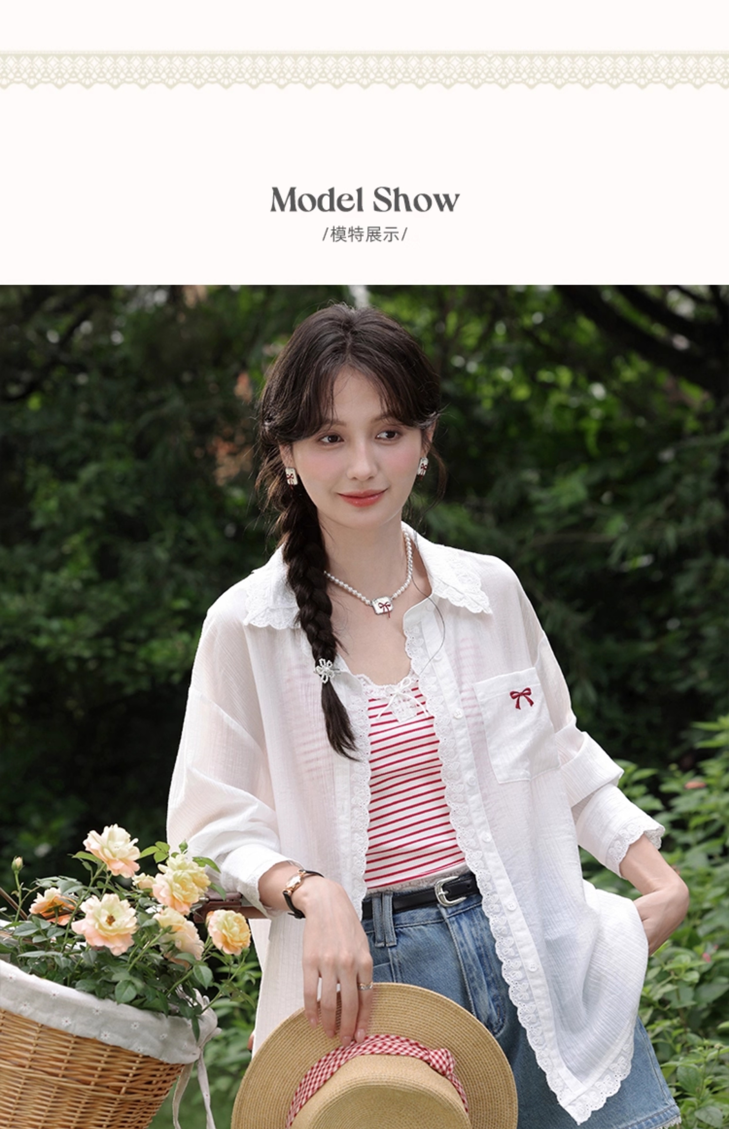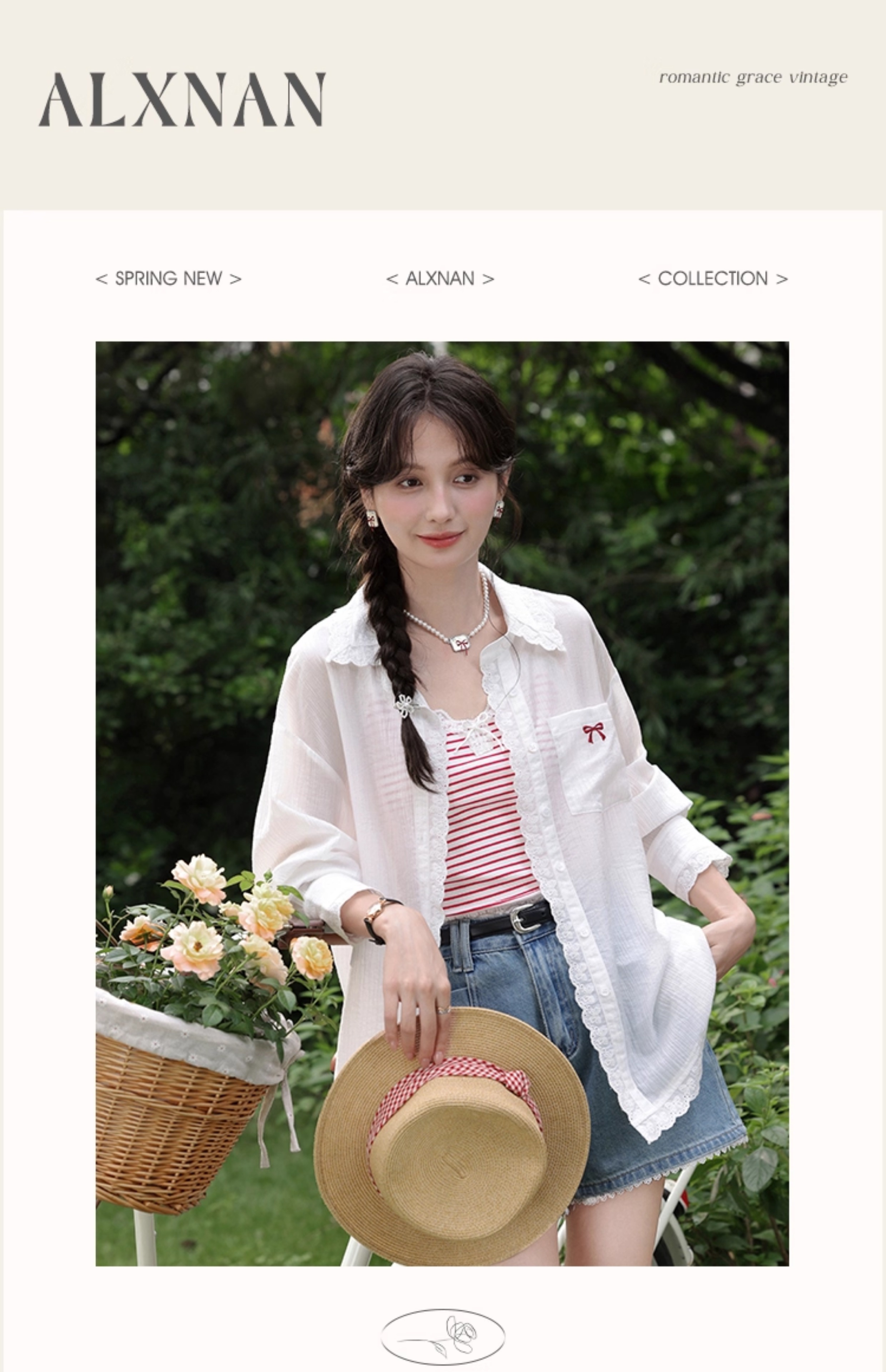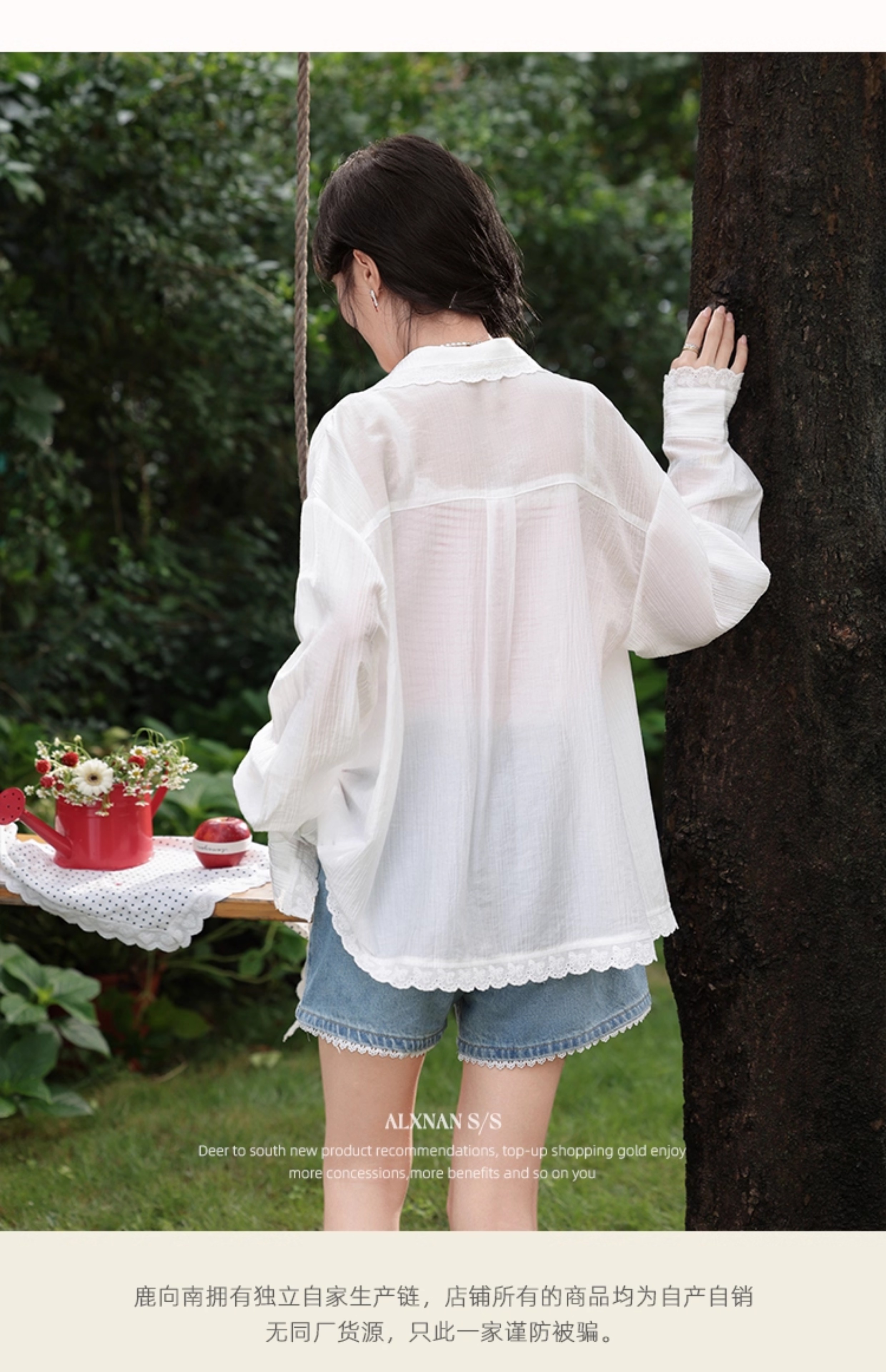 【65折秒杀】鹿向南「秋日芭蕾」法式长袖防晒开衫夏季高级气质白色衬衫上衣女L56632