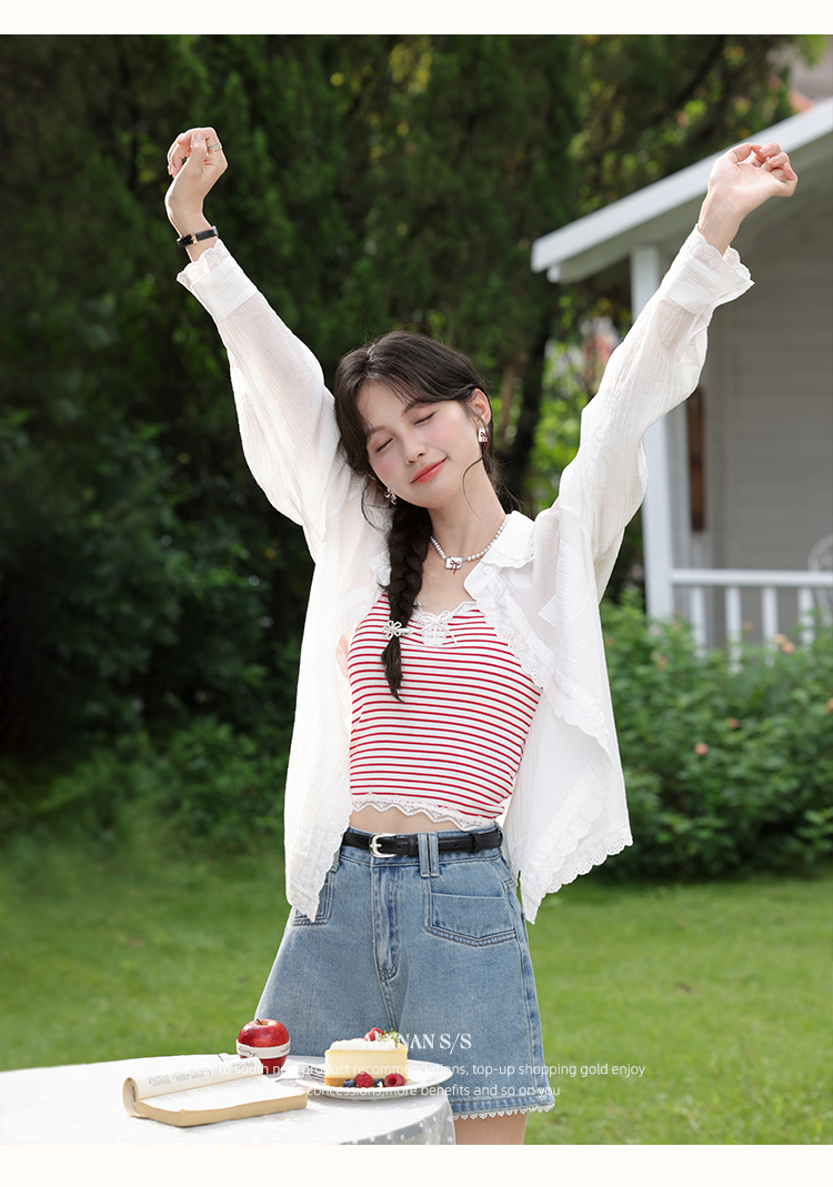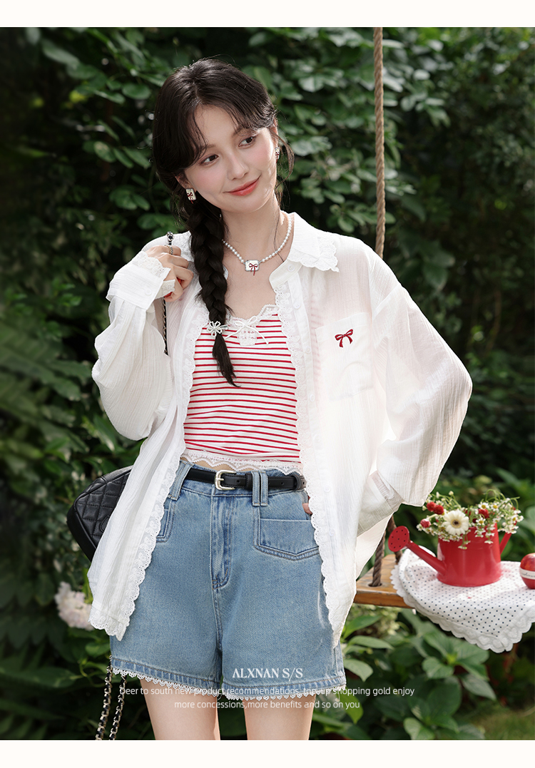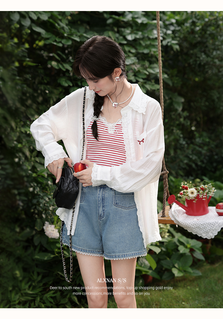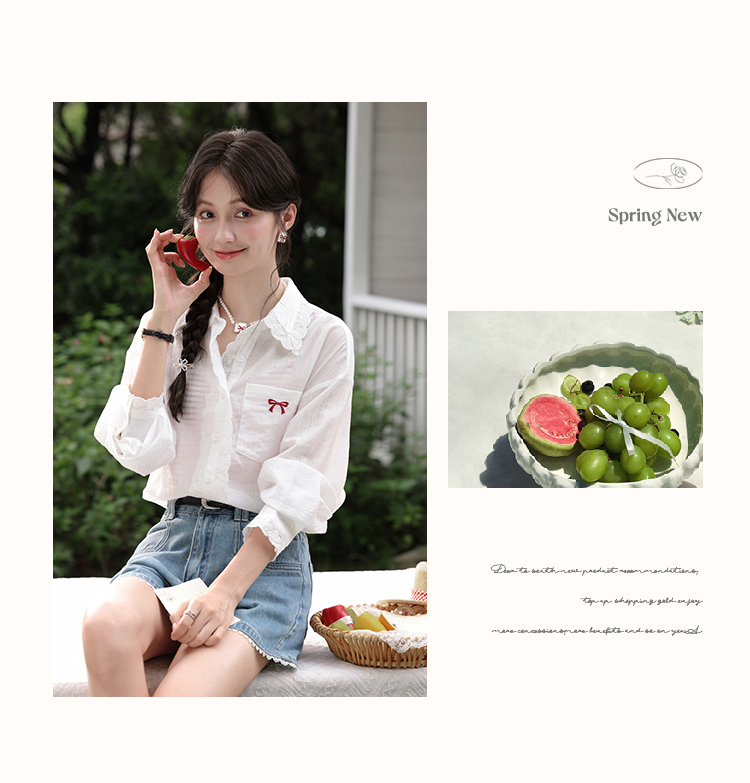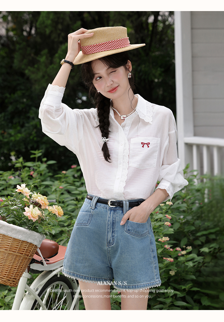 【65折秒杀】鹿向南「秋日芭蕾」法式长袖防晒开衫夏季高级气质白色衬衫上衣女L56632