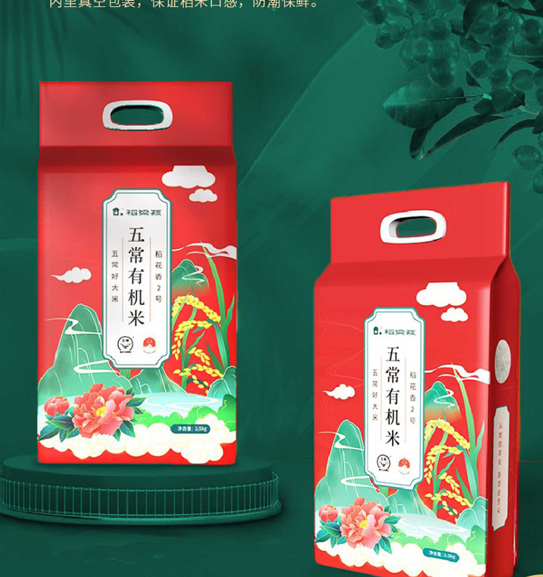 稻梁菽五常有机稻花香大米有机红色袋装5斤—rxs