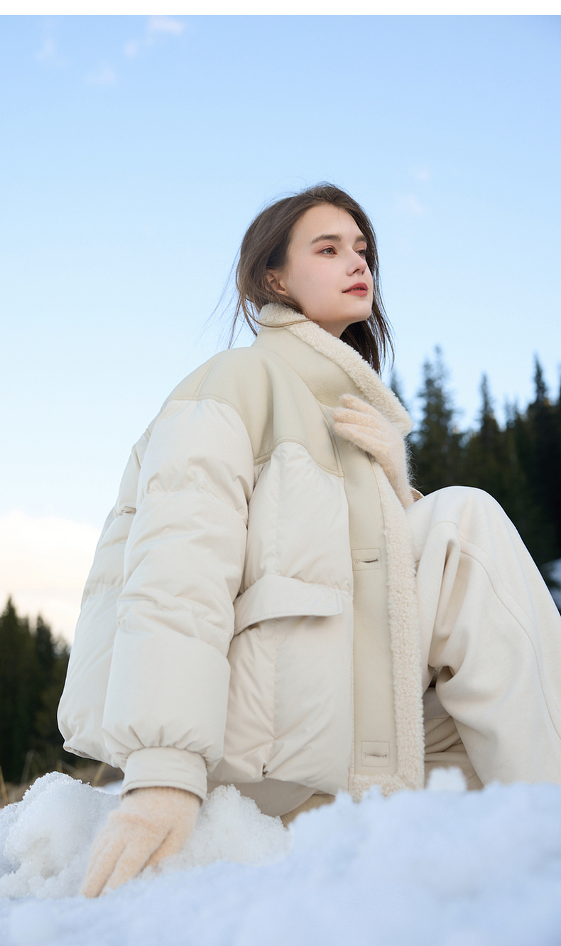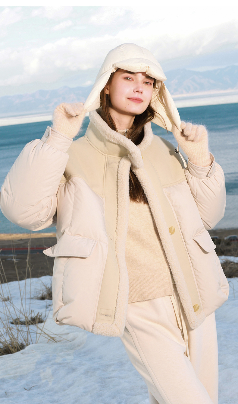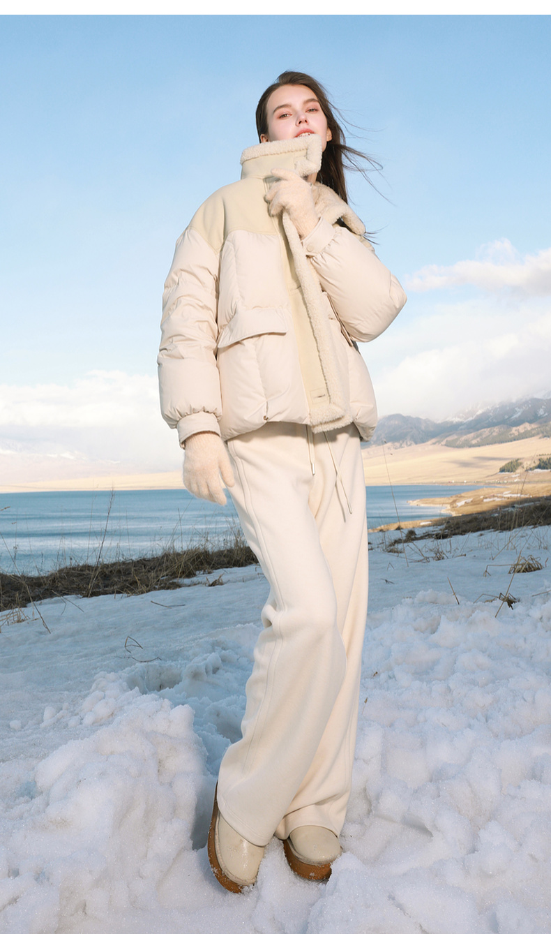 【90白鹅绒】三彩2025冬季新款短款宽松羽绒服拼接立领外套M