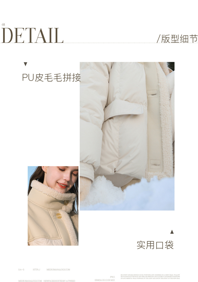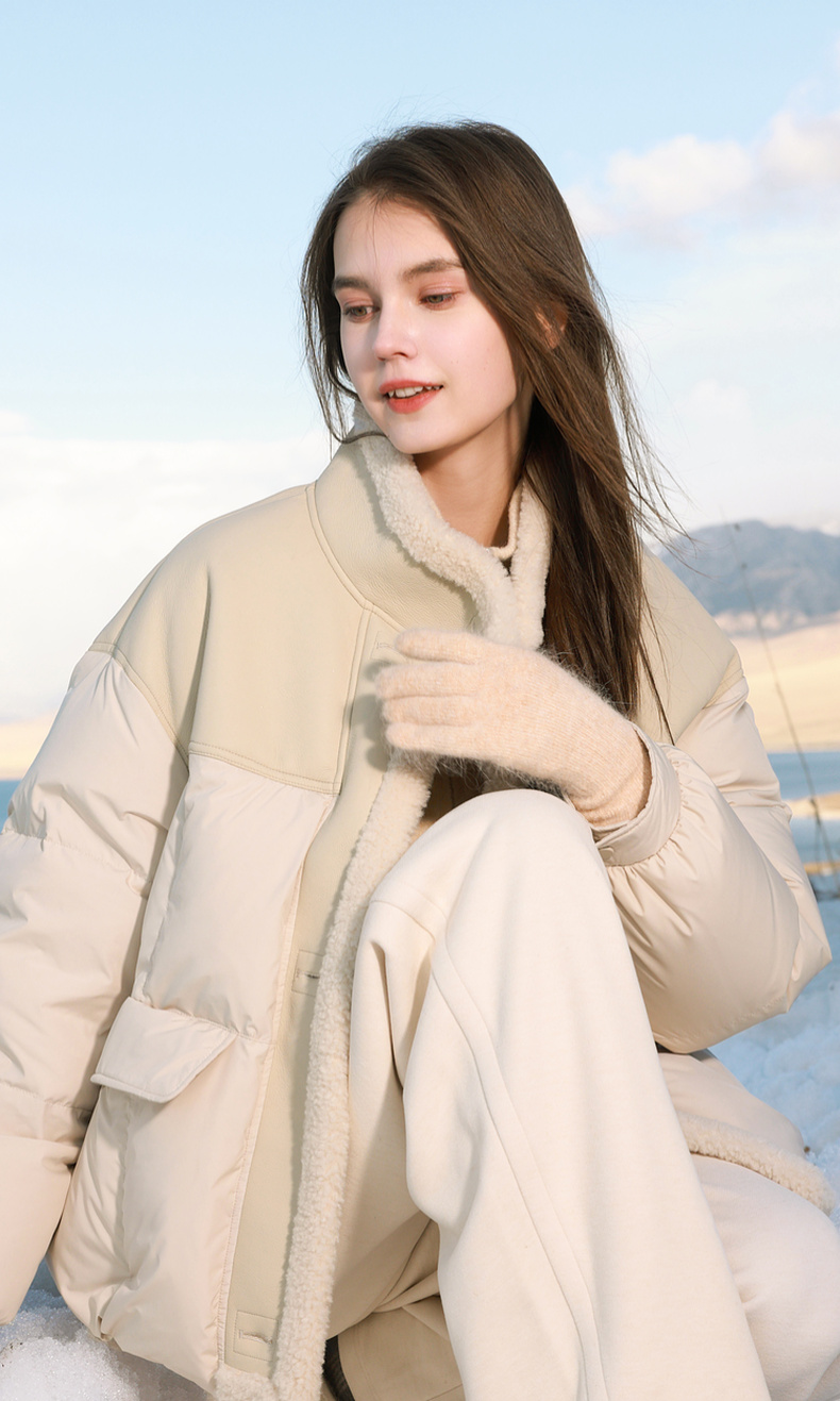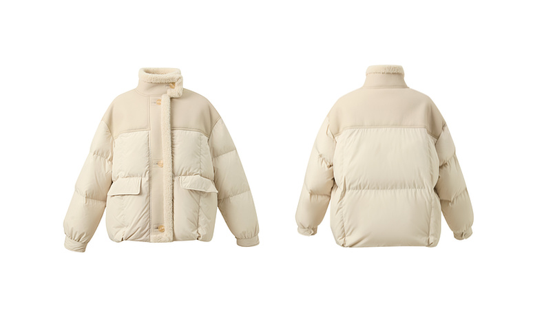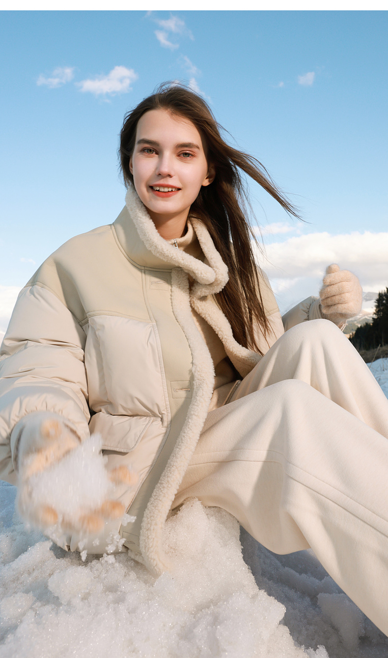 【90白鹅绒】三彩2025冬季新款短款宽松羽绒服拼接立领外套M
