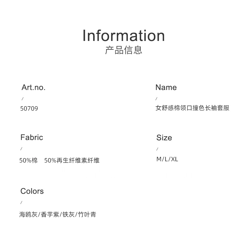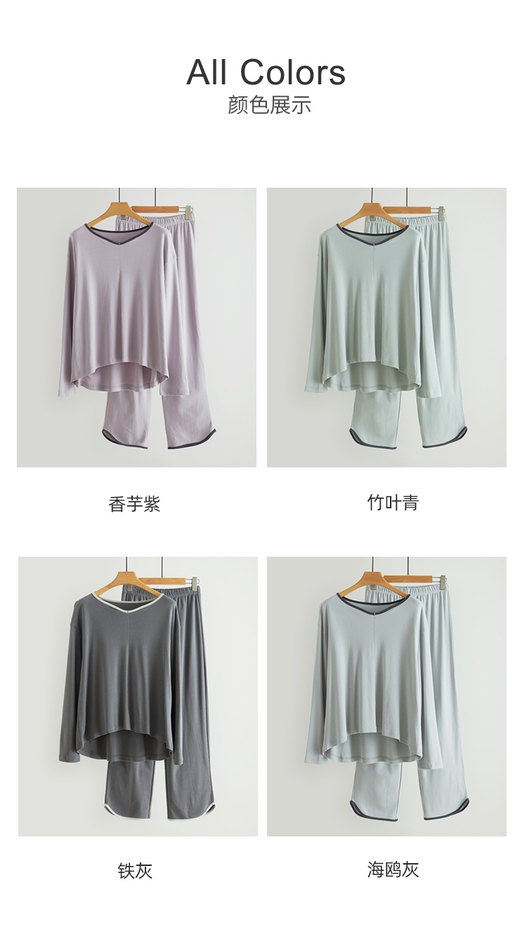 女舒感棉领口撞色宽松舒适长袖套服睡衣家居服 50709 商品图1