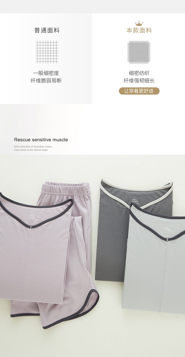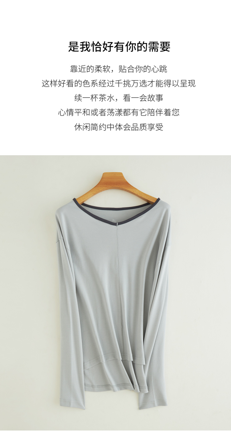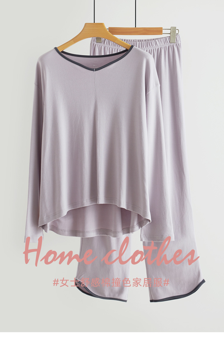 女舒感棉领口撞色宽松舒适长袖套服睡衣家居服 50709
