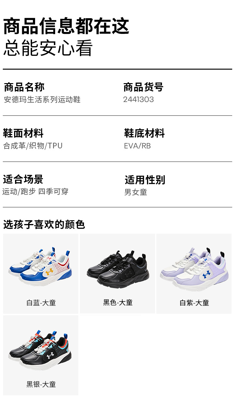 【困妈专属12月-特惠福利】Under Armour安德玛 男女童时尚休闲鞋2024秋冬新款2441303超低折扣