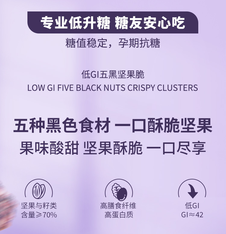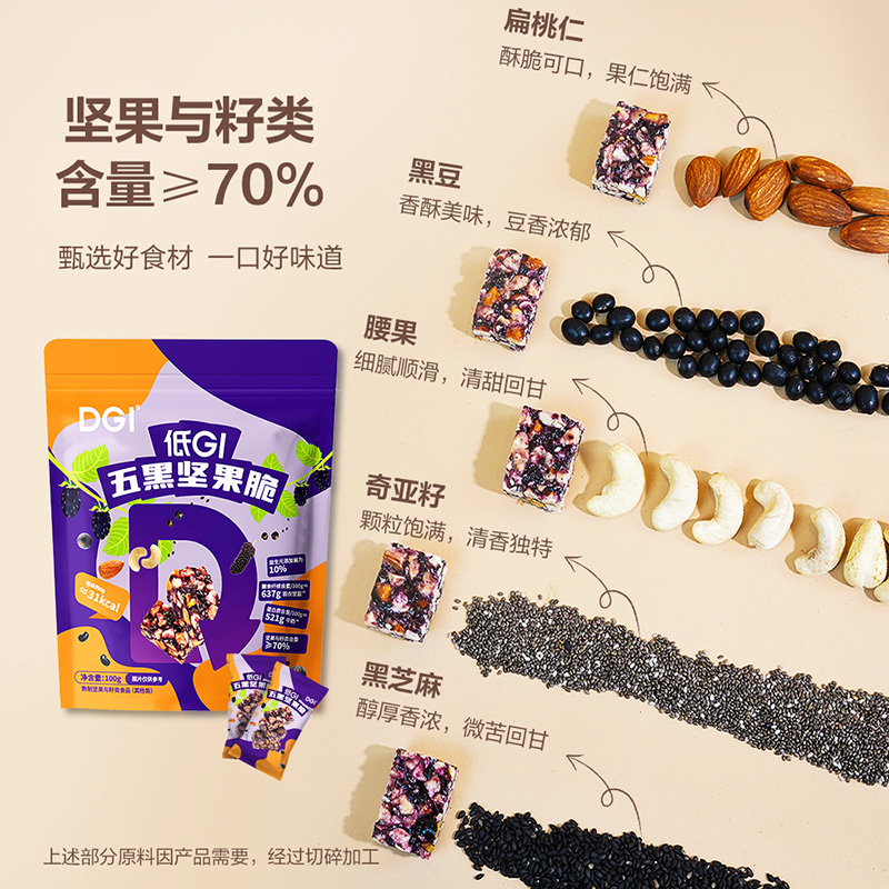 【糖友安心吃】DGI 五黑坚果脆 100g/袋 酥脆更美味