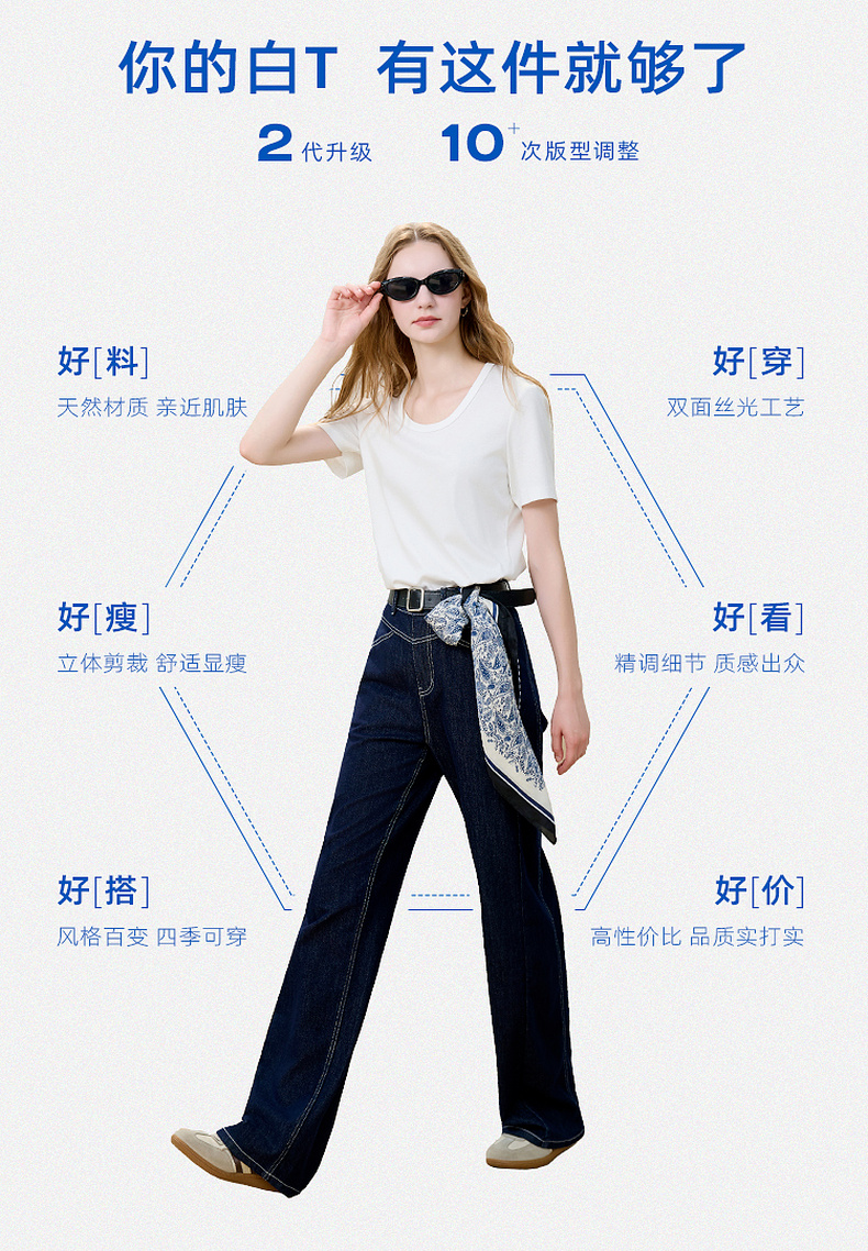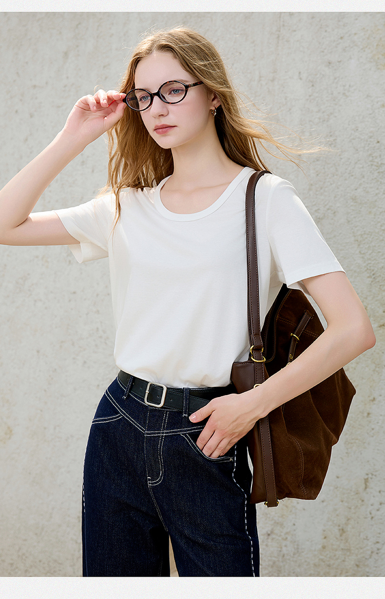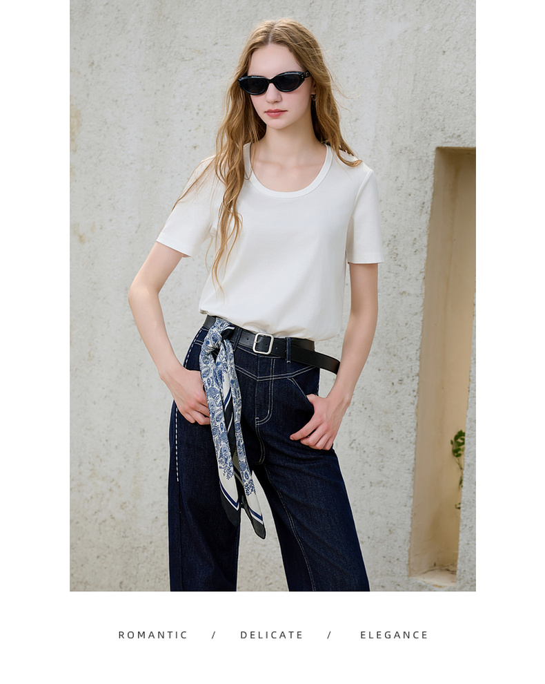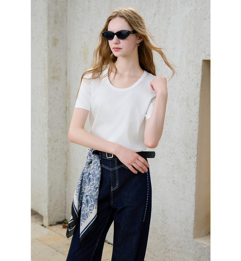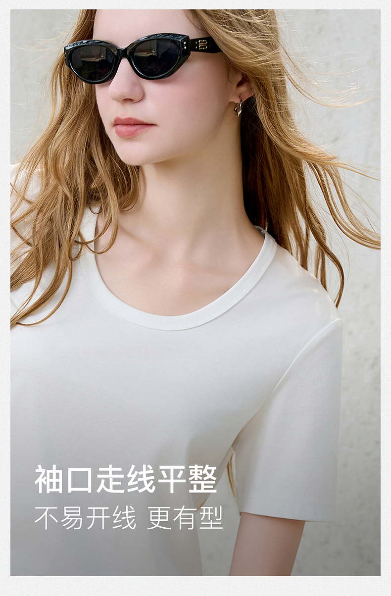 【六好柔柔T】三彩2025秋季新款丝光T恤白色圆领正肩短袖小白T简约Z