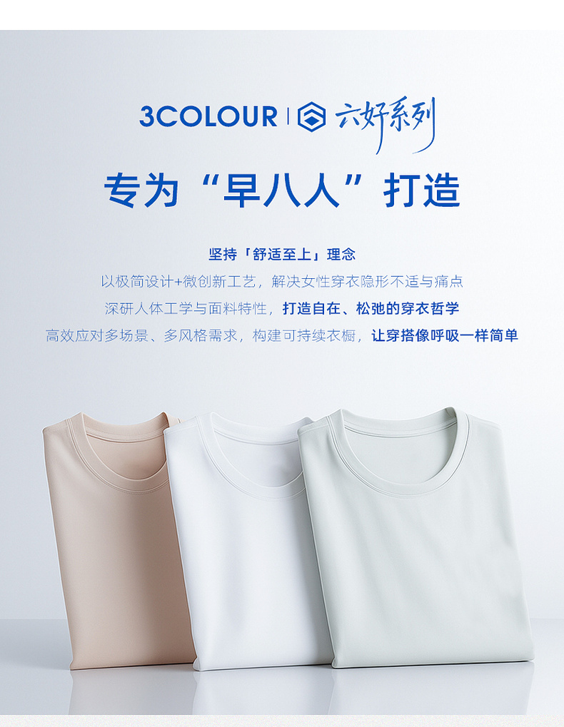 - 3COLOUR,一直致力于探索自我与时尚审美,用穿衣哲学折射生活主张,在流动中探寻恒久。
