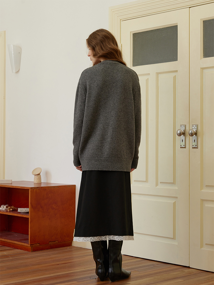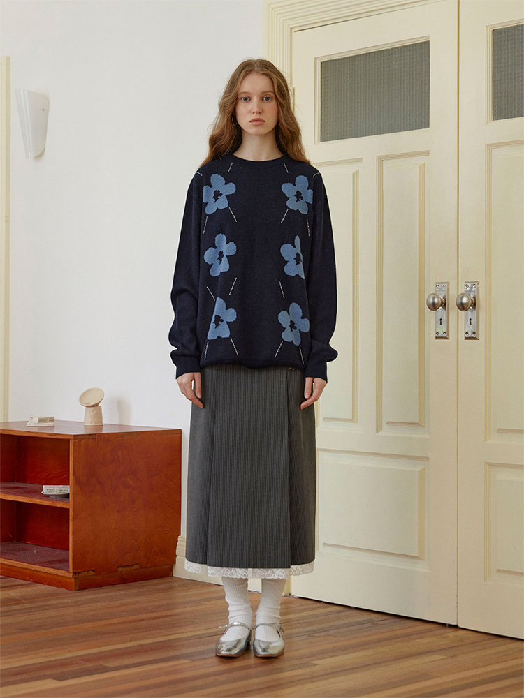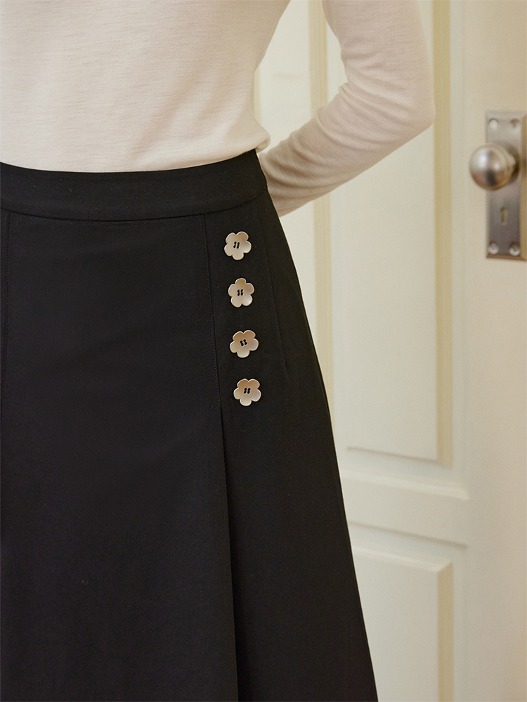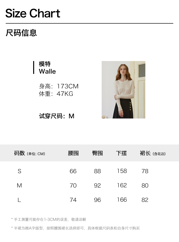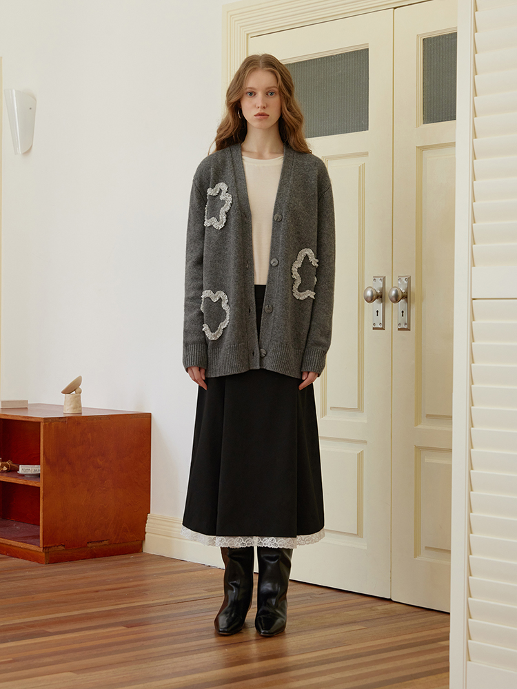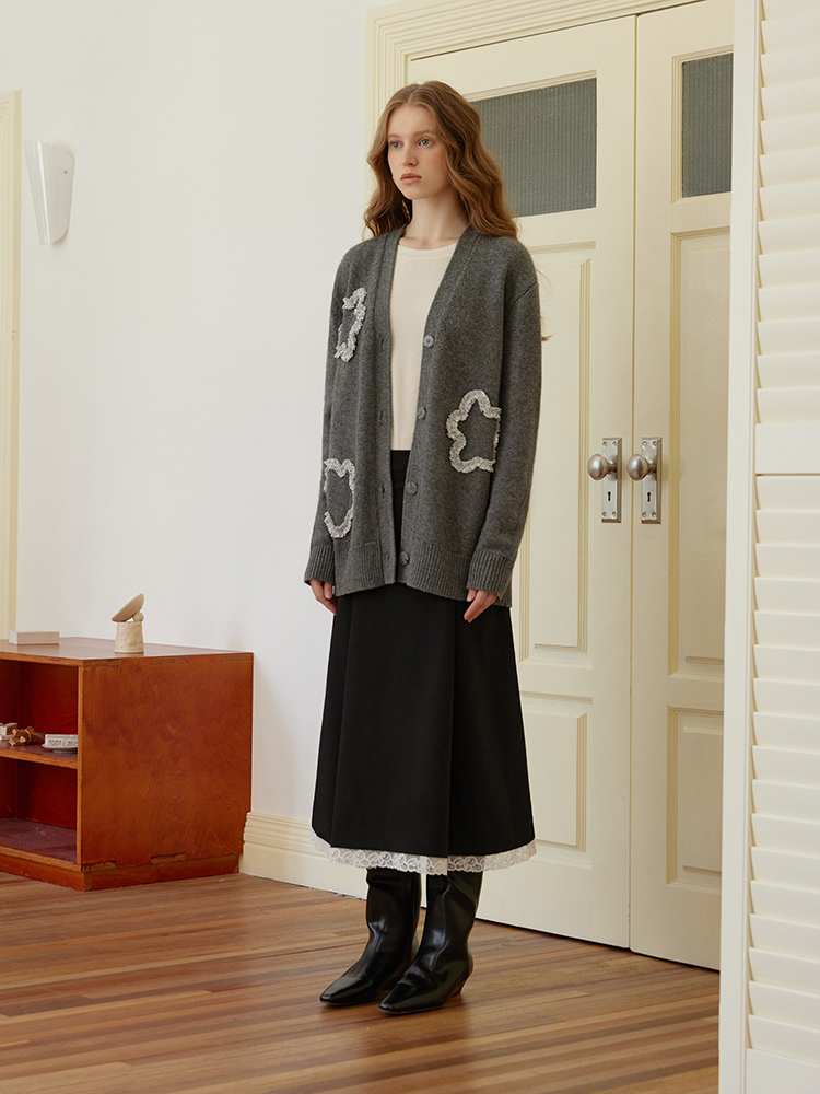 ForPoem 现货 24/FW原创设计花朵装饰直筒蕾丝拼接半身裙