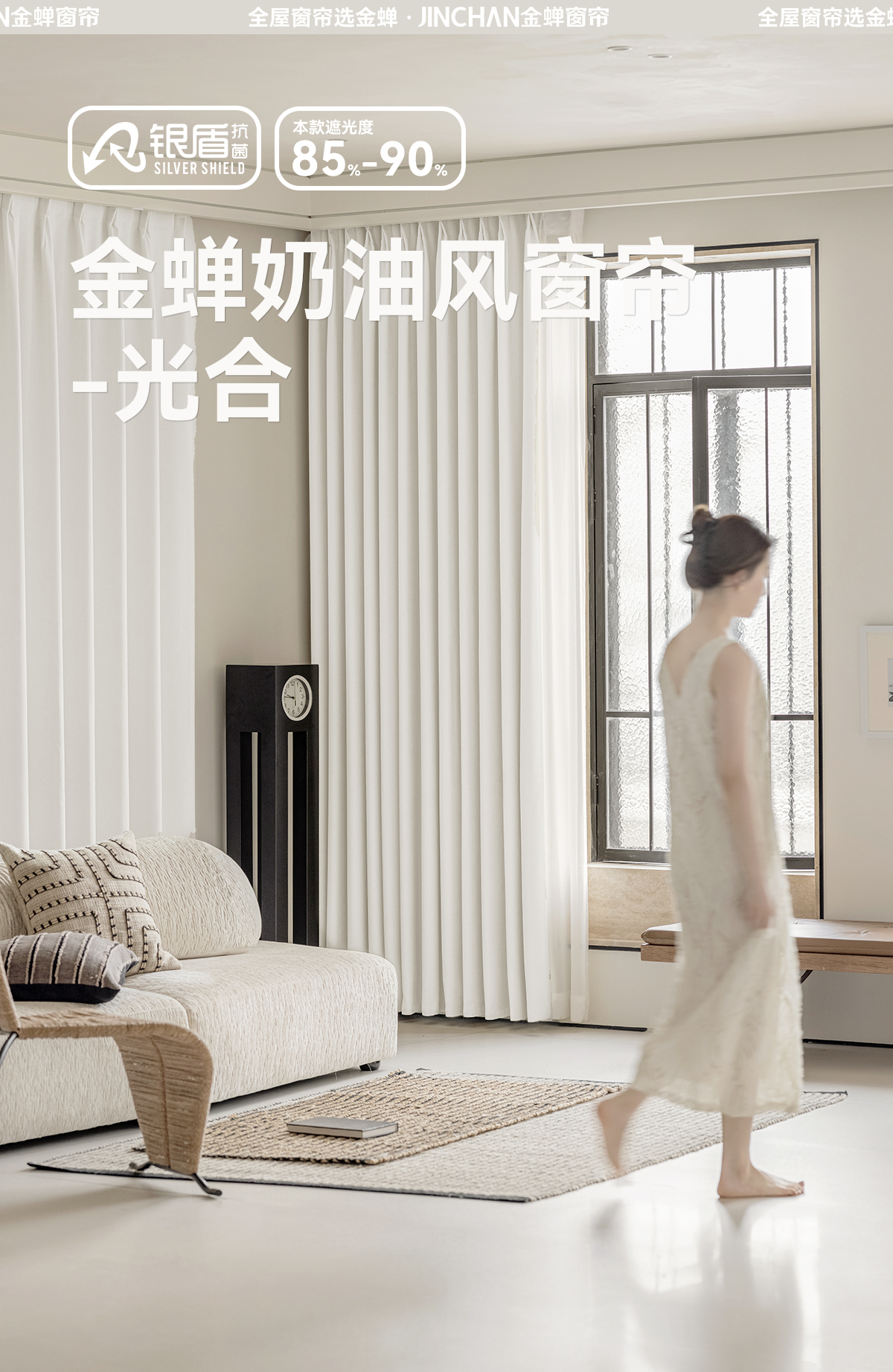【光合】金蝉新款竖纹雪尼尔抗菌遮光卧室客厅现代风窗帘