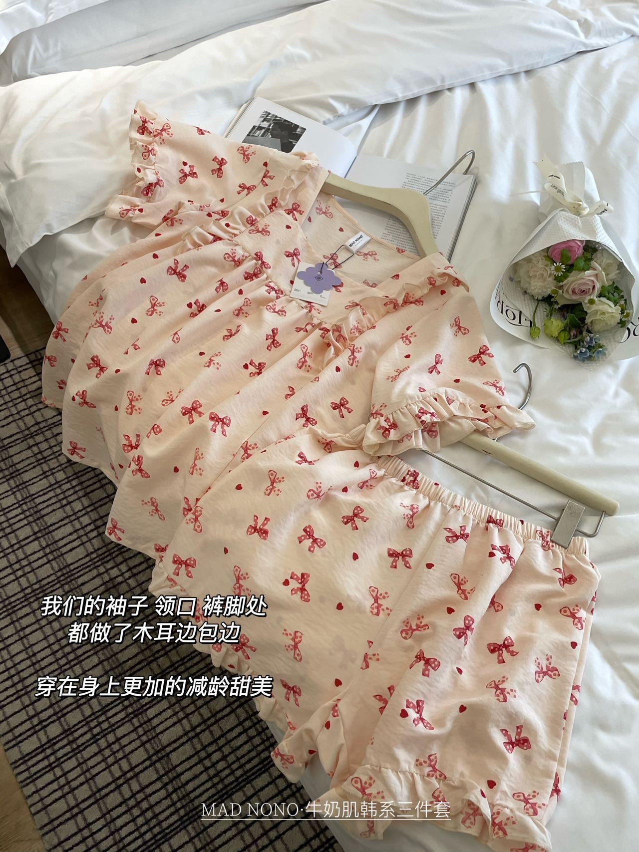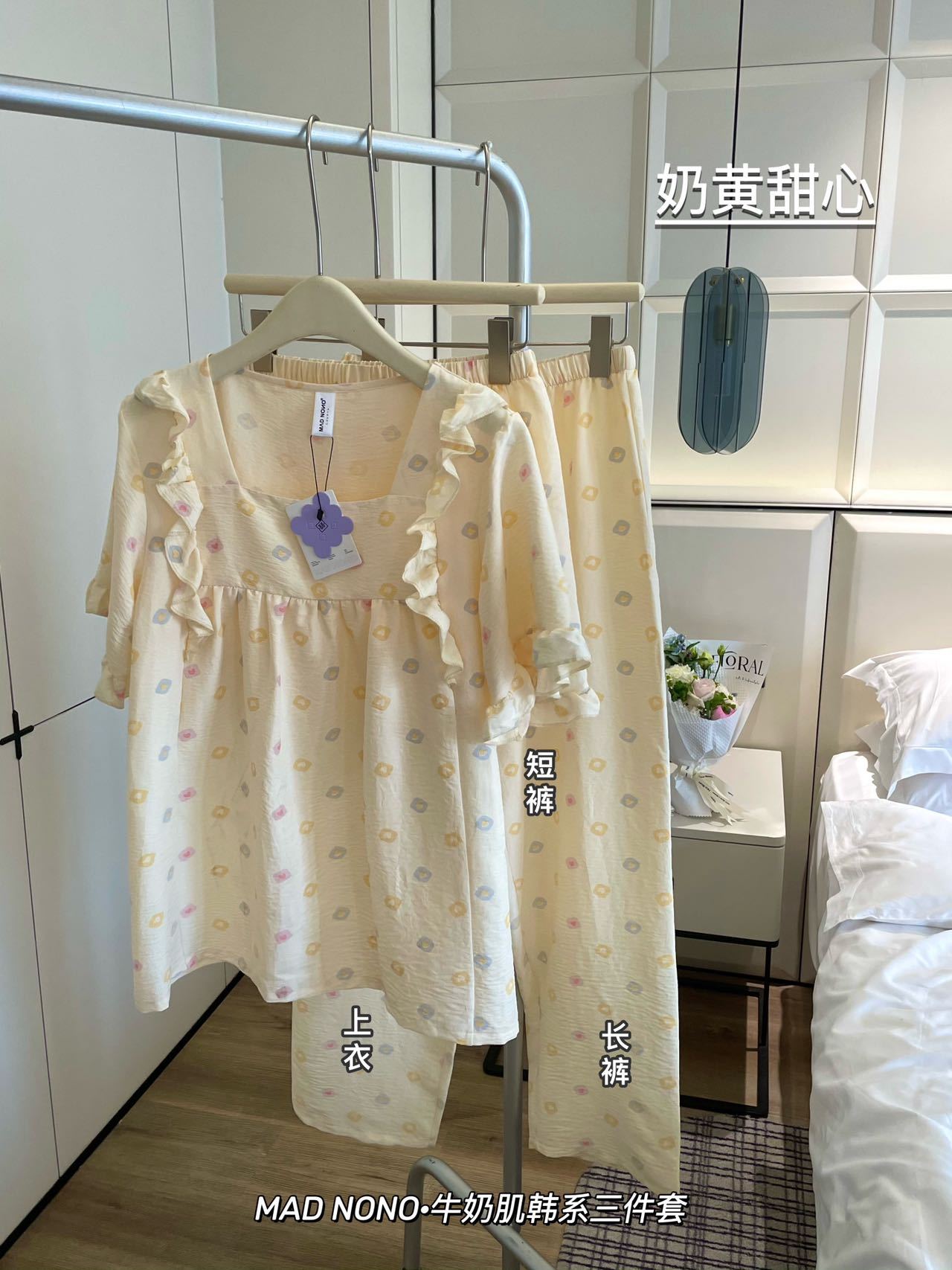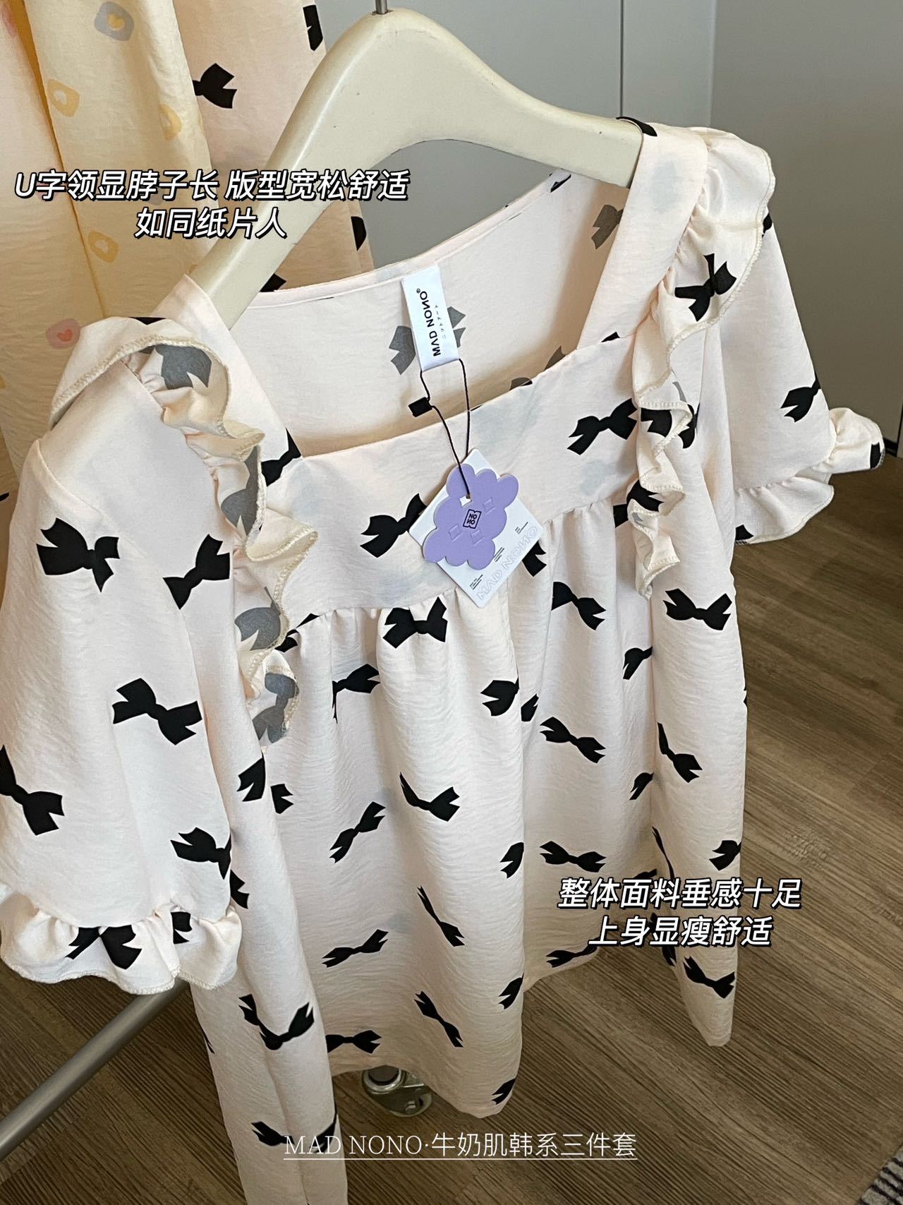 【MAD NONO牛奶肌韩系三件套】🎀好看好穿还凉快🌷出门拿快递能被要链接 ✅软棉棉材质,上手糯叽叽,很舒服,如同婴儿的触感,U字领显脖子长,版型宽松舒适,如同纸片人