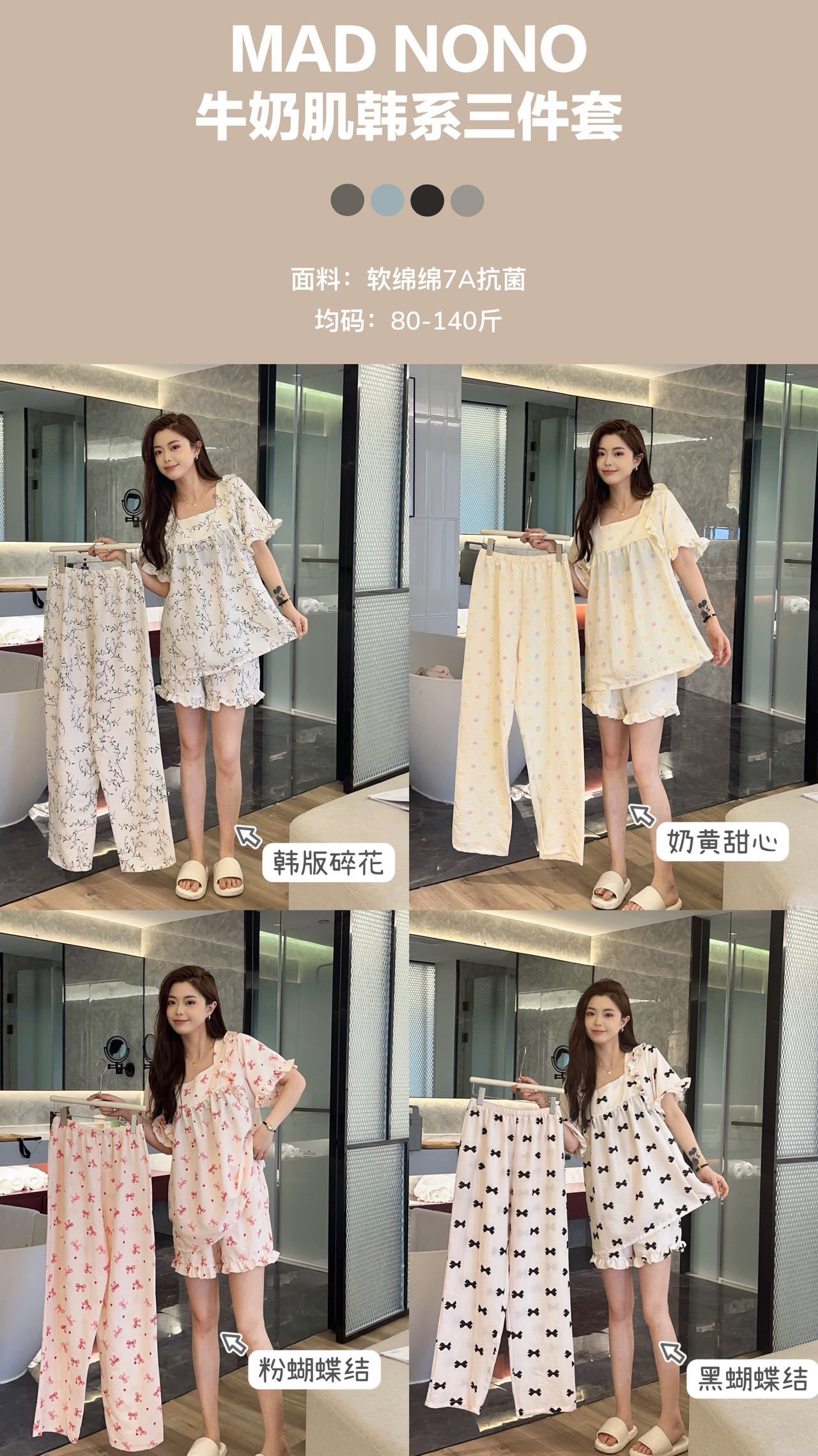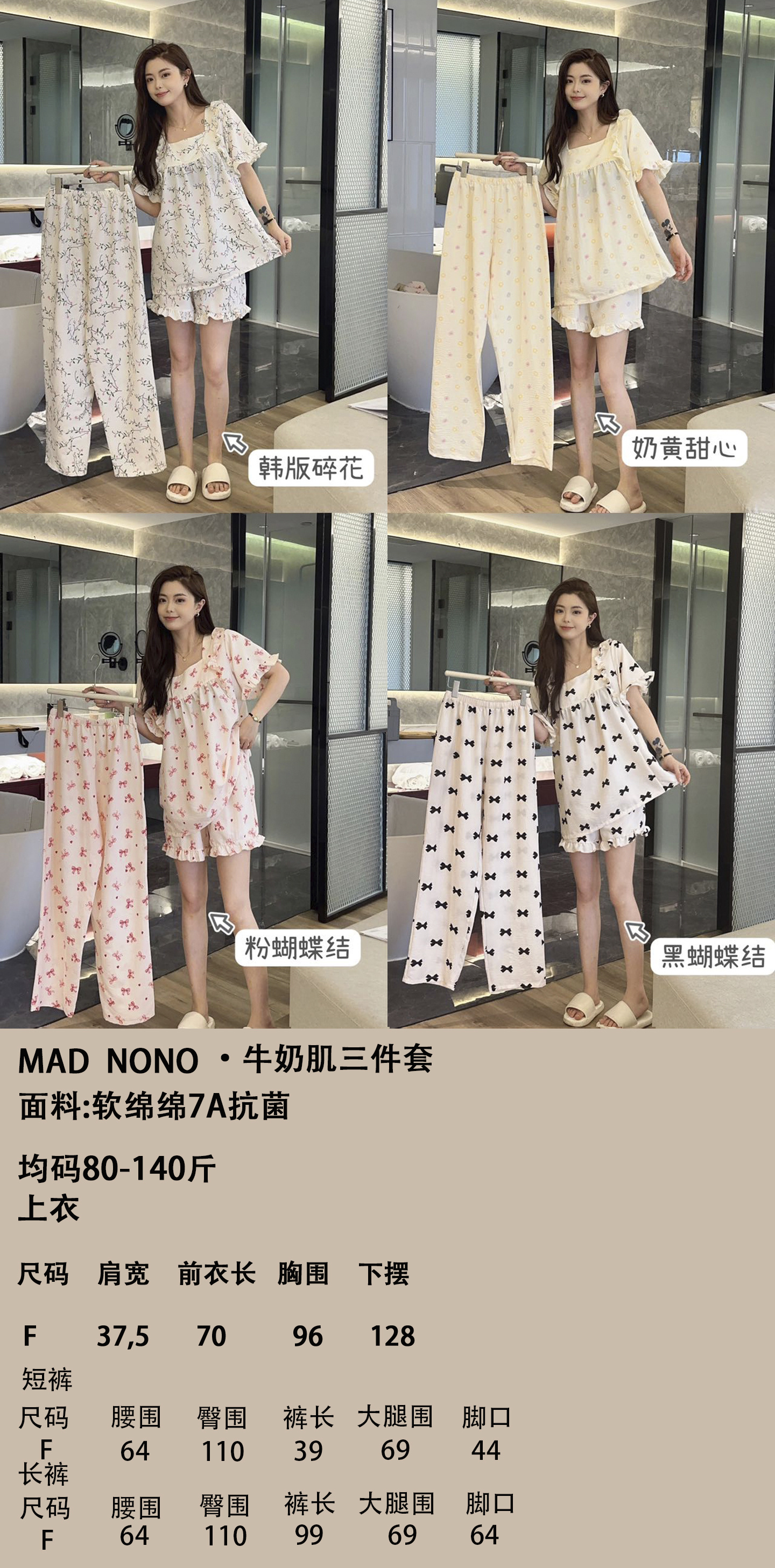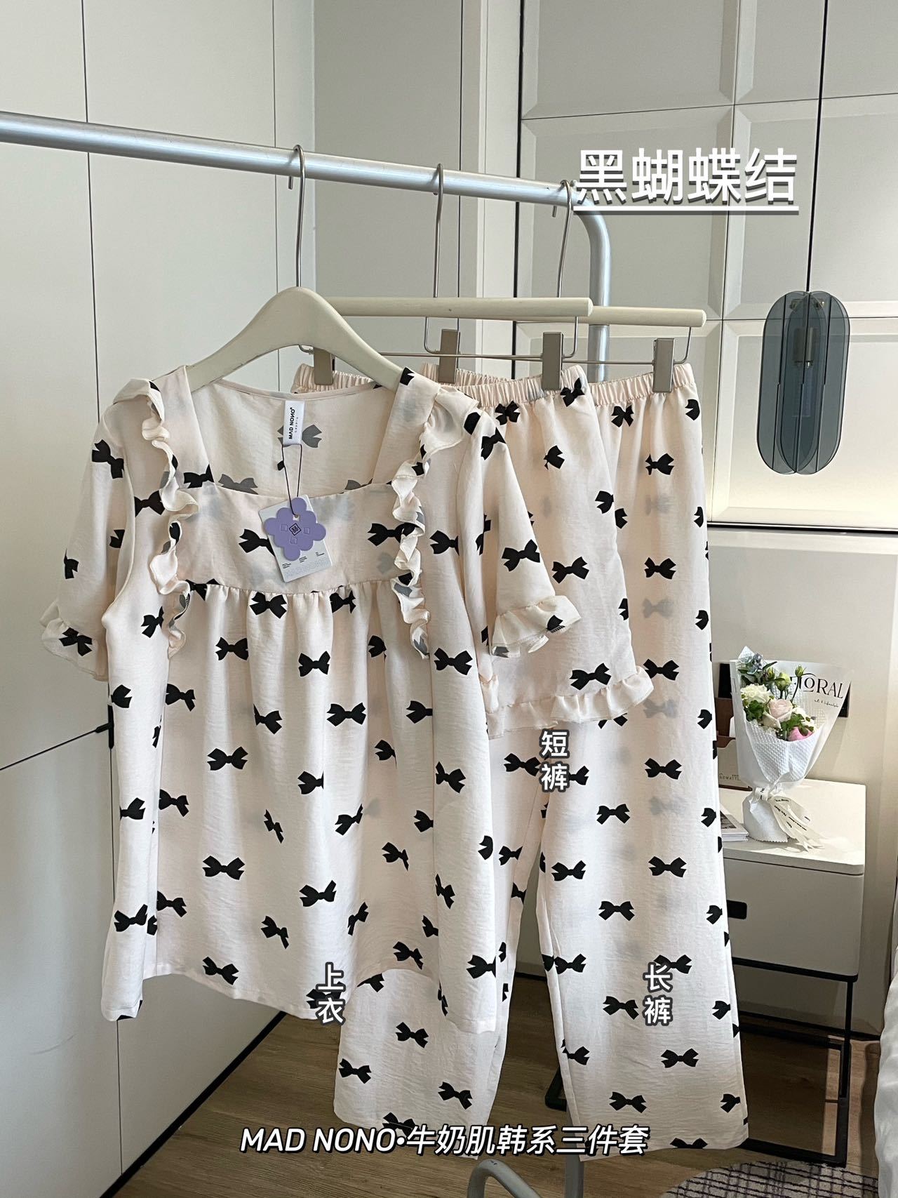 【MAD NONO牛奶肌韩系三件套】🎀好看好穿还凉快🌷出门拿快递能被要链接 ✅软棉棉材质,上手糯叽叽,很舒服,如同婴儿的触感,U字领显脖子长,版型宽松舒适,如同纸片人