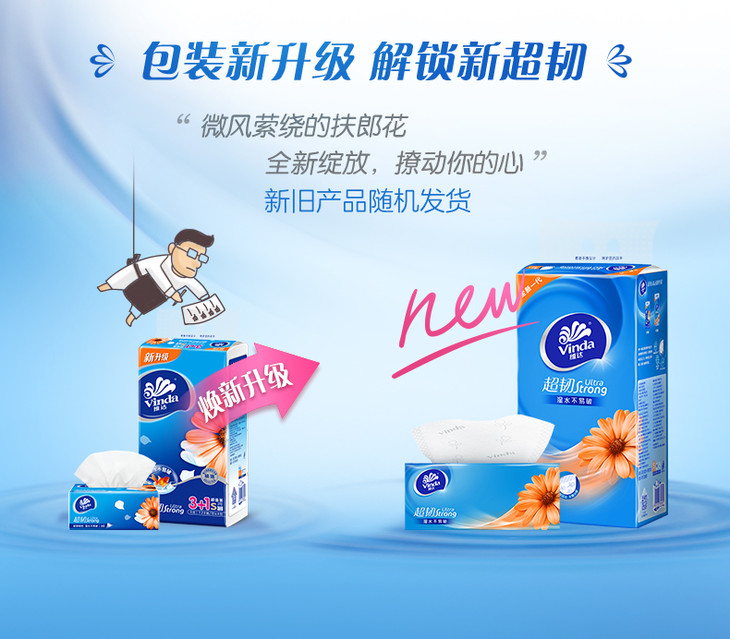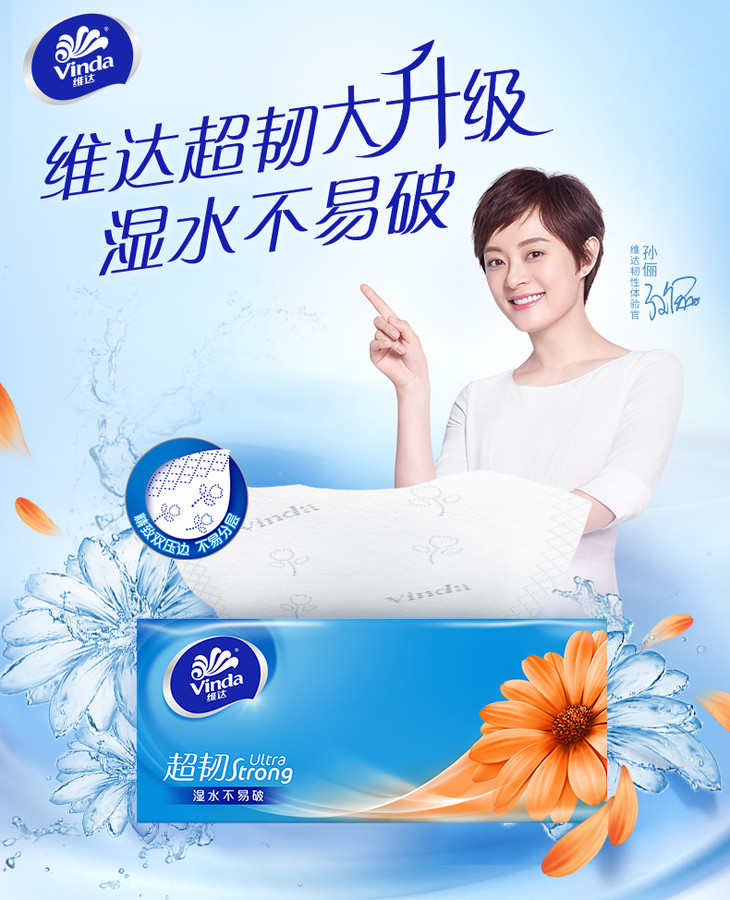 维达(Vinda) 120抽*4包 超韧3层 抽纸纸巾 软抽 手纸 面巾纸 擦手纸 包邮