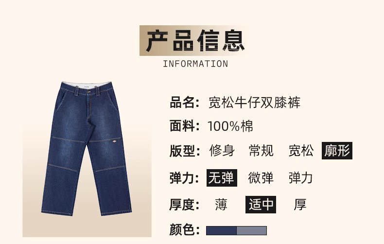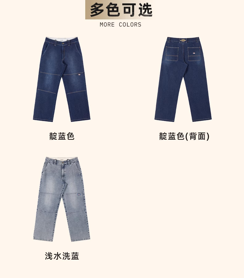 Dickies【田嘉瑞同款】宽松直筒牛仔裤男阔腿双膝休闲工装长裤 DK0A88RQ